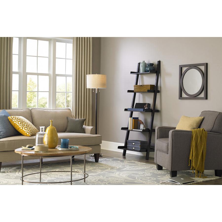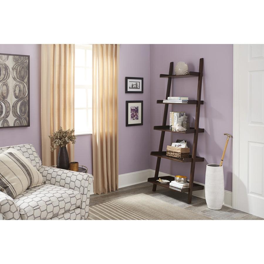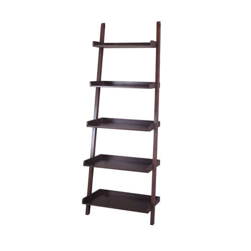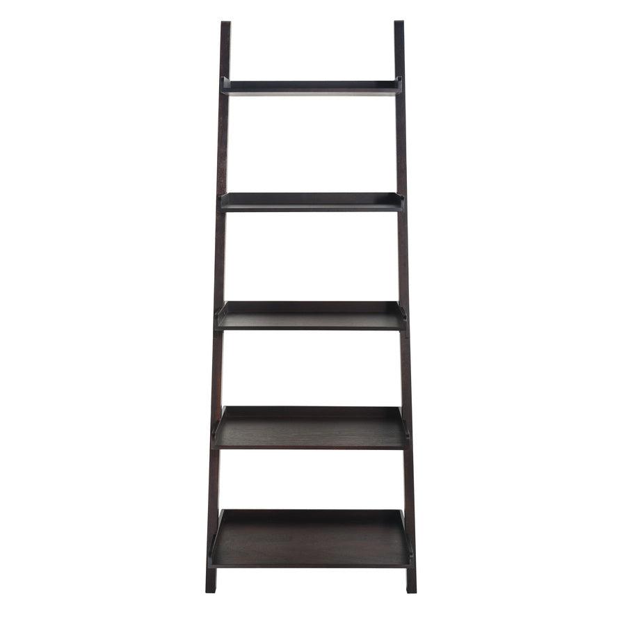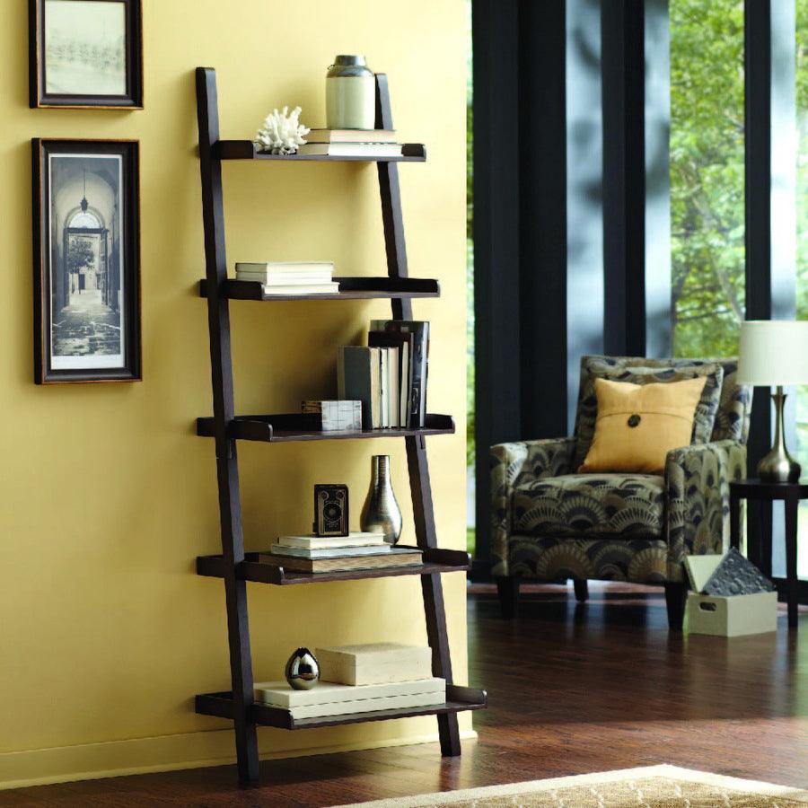 5-Tier Java finish bookcase organizes your reading collection, glassware and decor