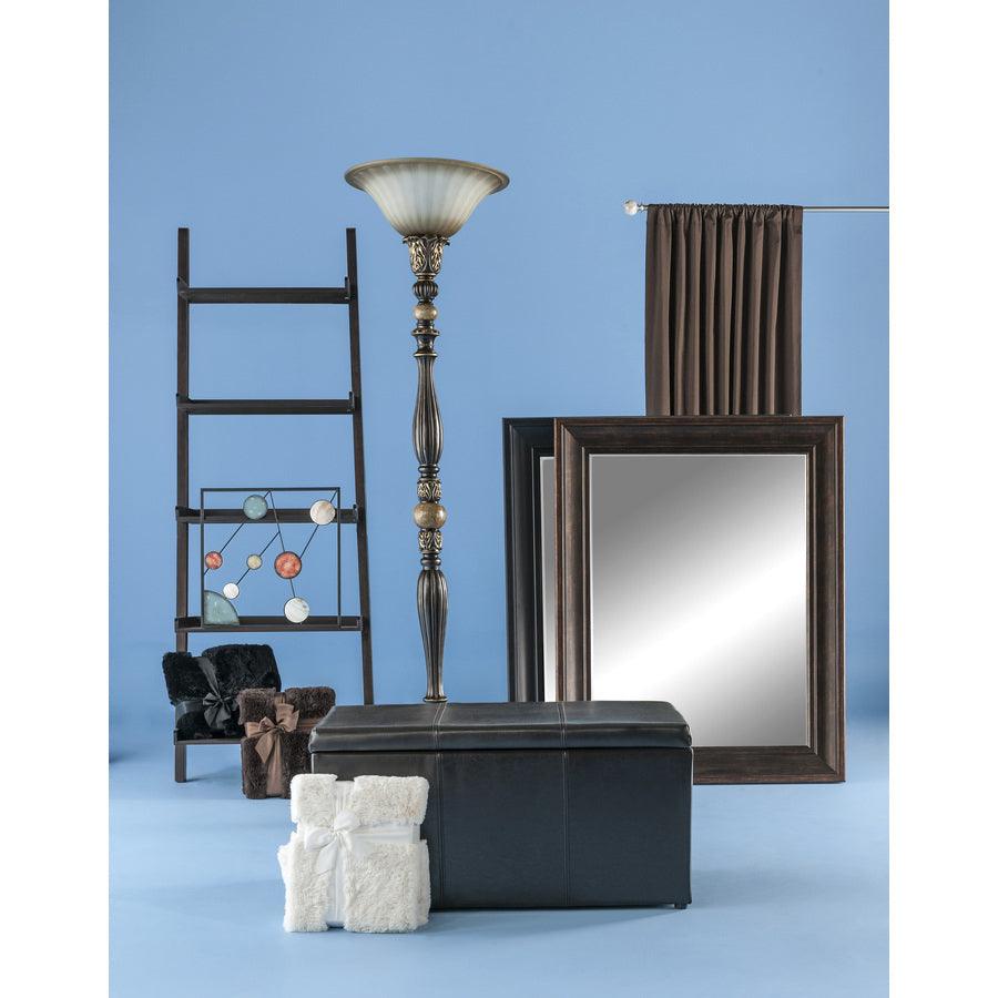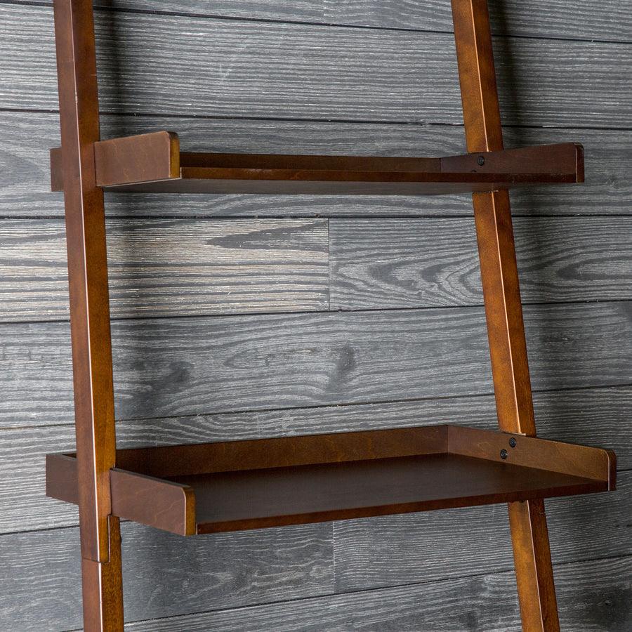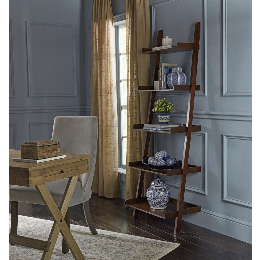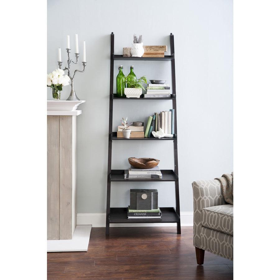 5-Tier Java finish bookcase organizes your reading collection, glassware and decor