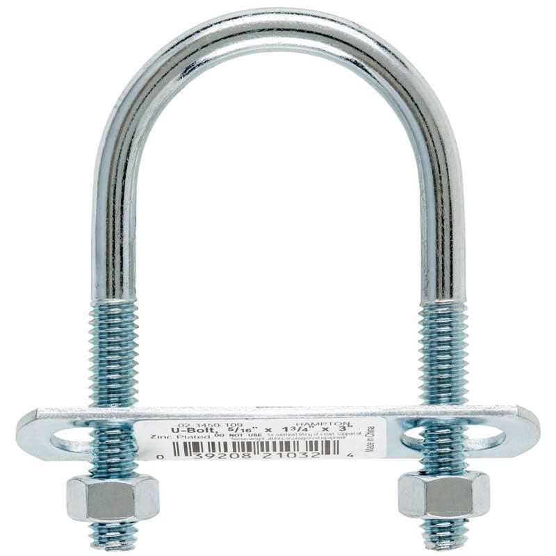 Hampton 5/16 in. X 1-3/4 in. W X 3 in. L Coarse Zinc-Plated Steel U-Bolt