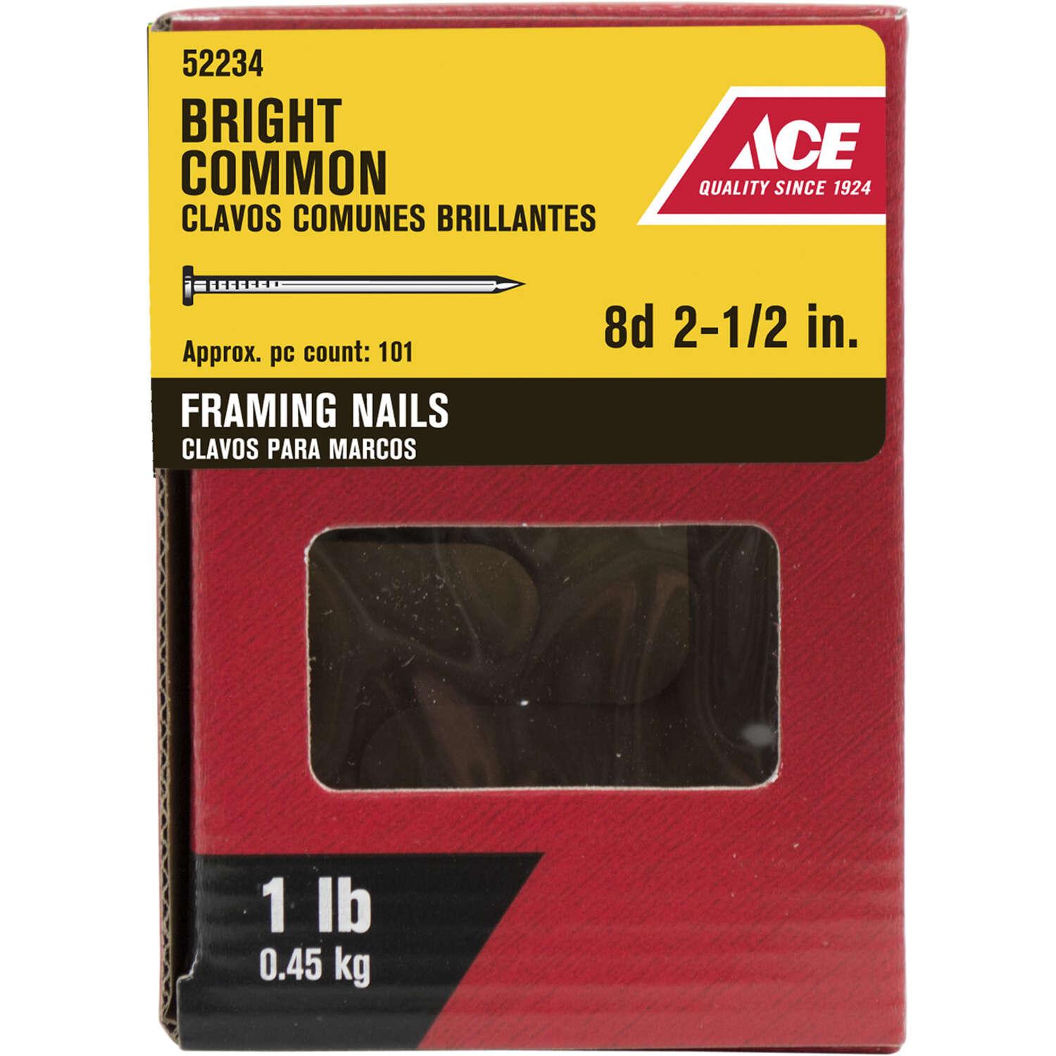 Ace 8D 2-1/2 in. Framing Bright Steel Nail Round Head 1 lb