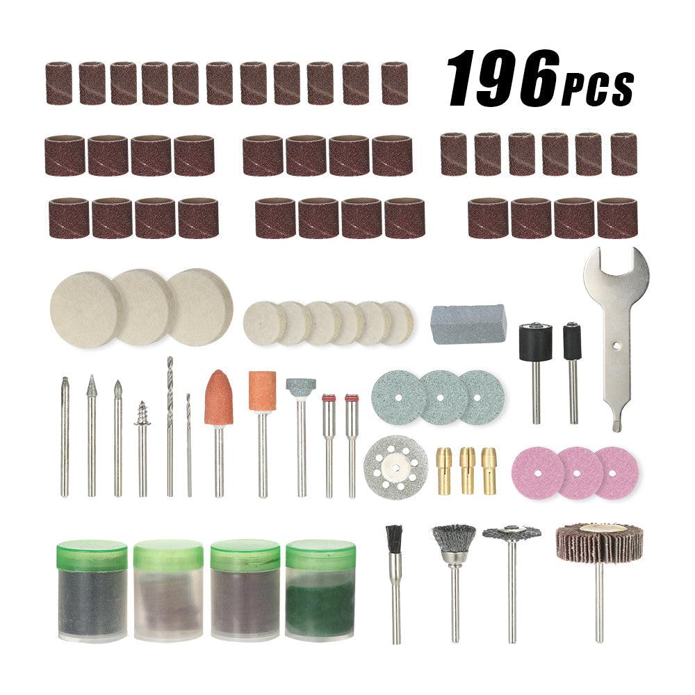 196pcs 1/8" Shank Rotary Tool Accessories Set Sanding Grinding Brushing Polishing Bits Accessory Kit with Storage Box