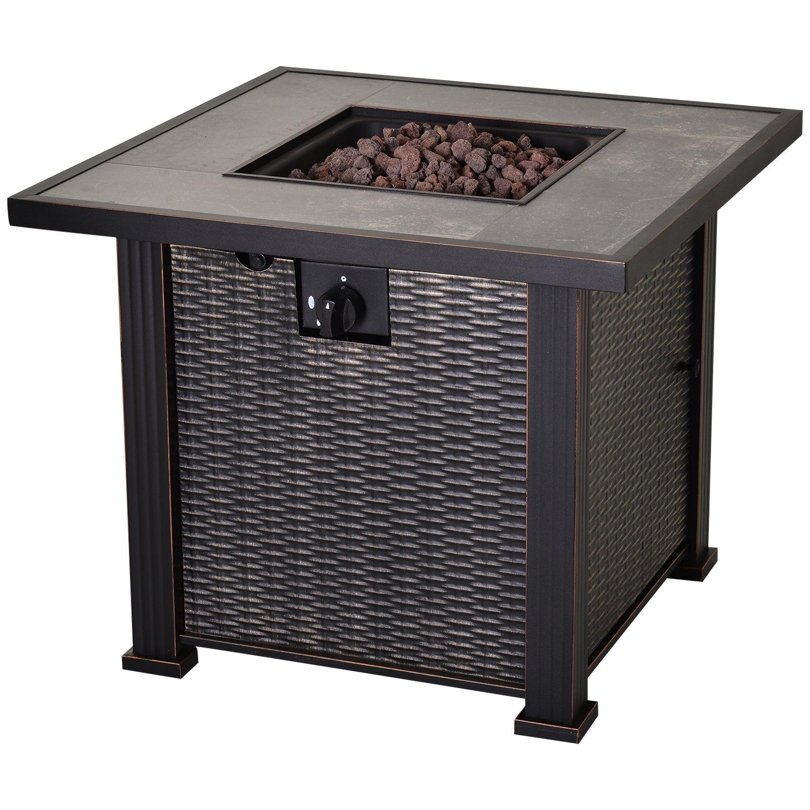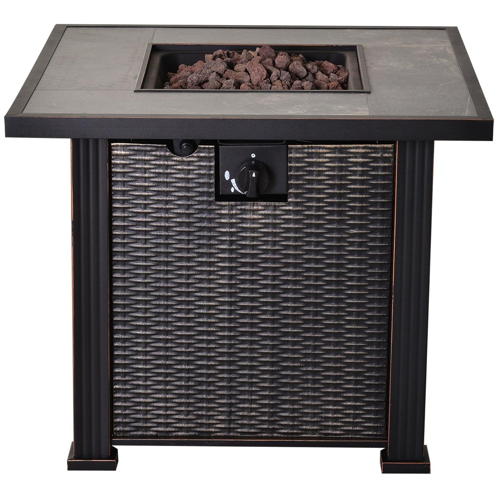 Outsunny 30" 50,000 BTU Outdoor Patio Backyard Gas Fire Pit Table with Beautiful Slate Tabletop & Wicker Design