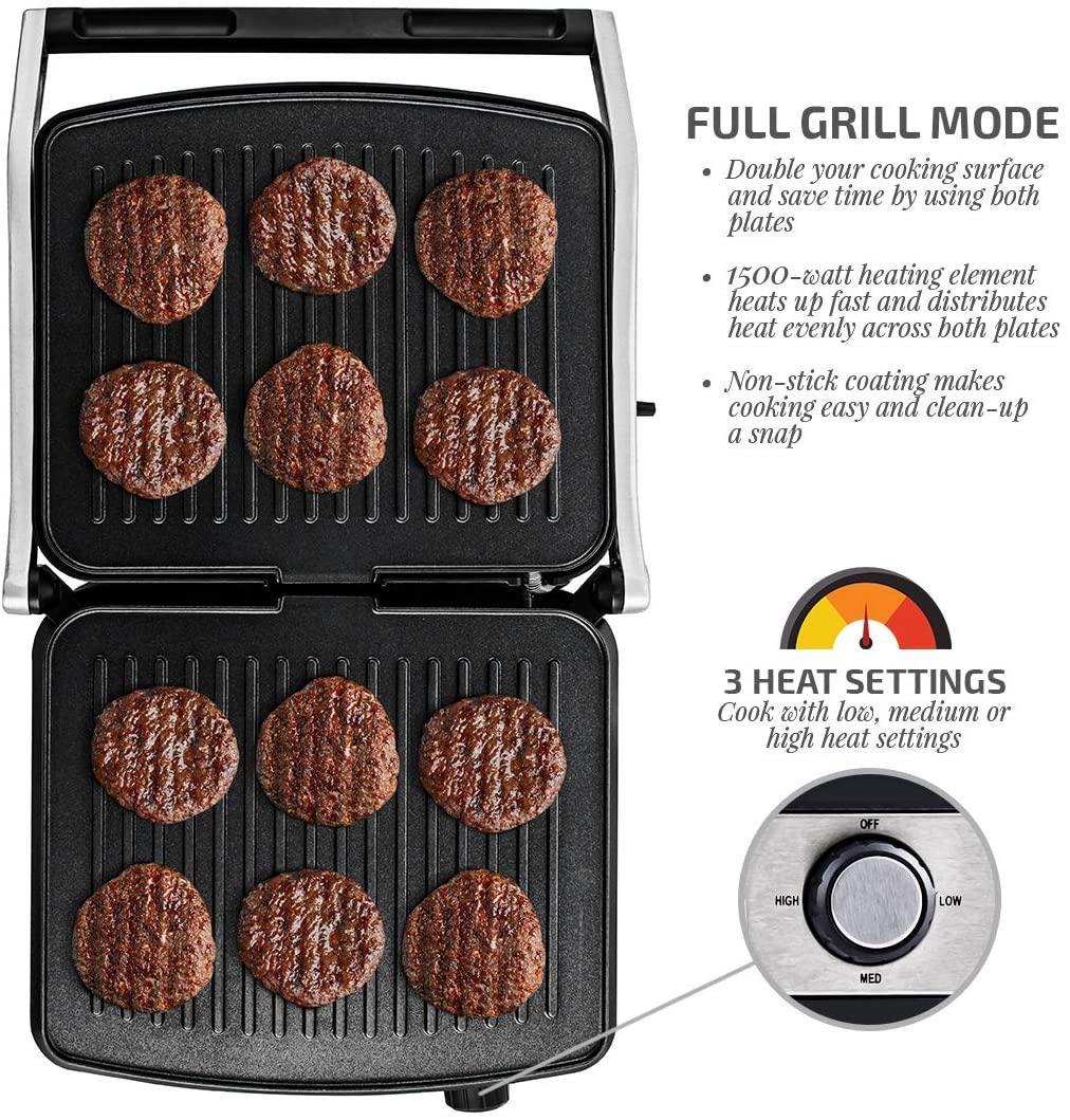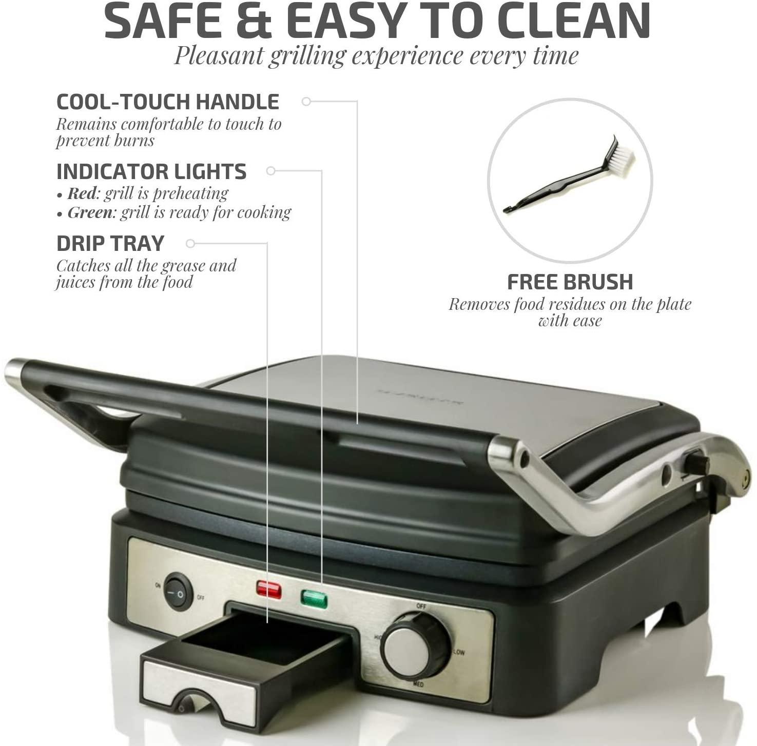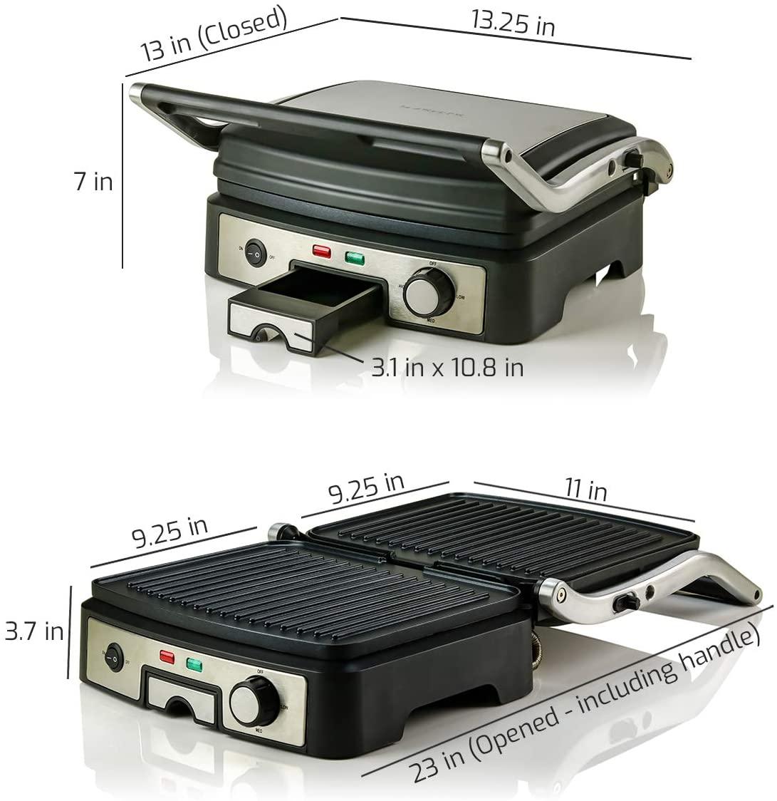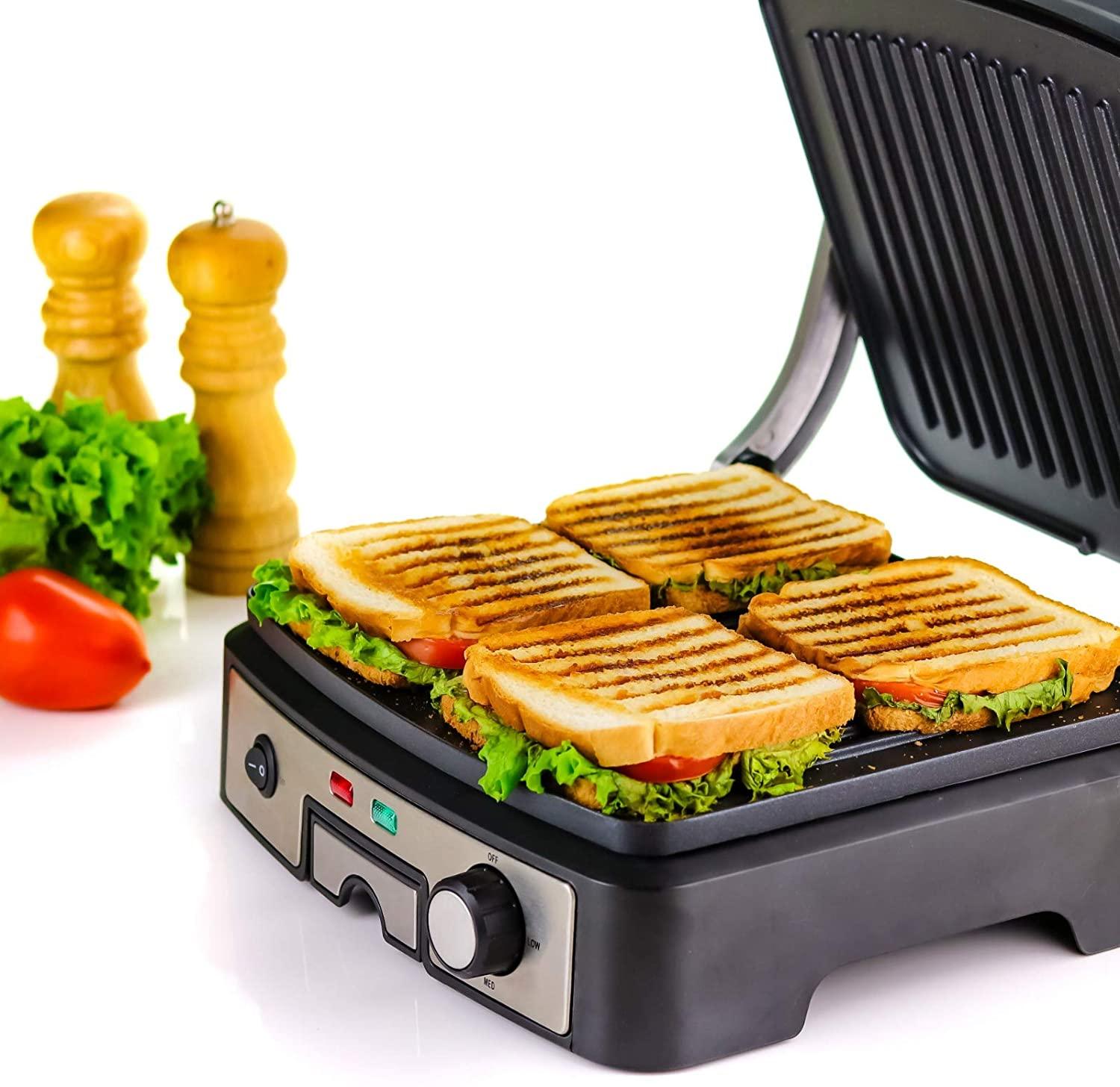 Ovente Electric Panini Press Grill Bread Toaster Nonstick Double Sided Flat Plates with 3 Temperature Setting & Removable Drip Tray, 4 Slice Sandwich Maker for Burger & Grilled Cheese, Silver GP1861BR