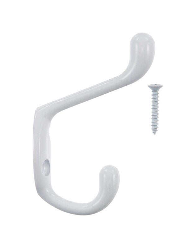 Ace 3 in. L White White Metal Medium Heavy Duty Coat and Hat Hook 1 pk