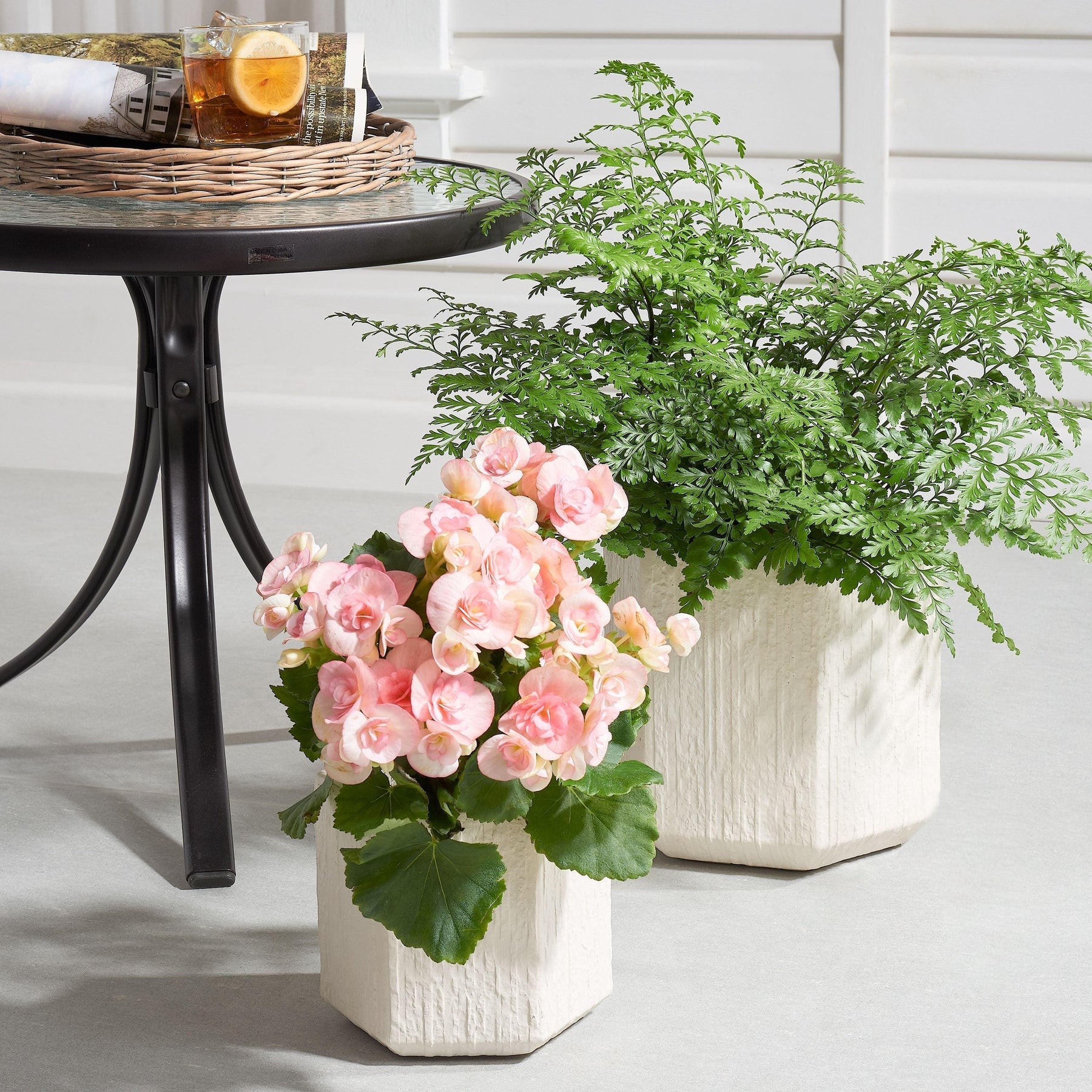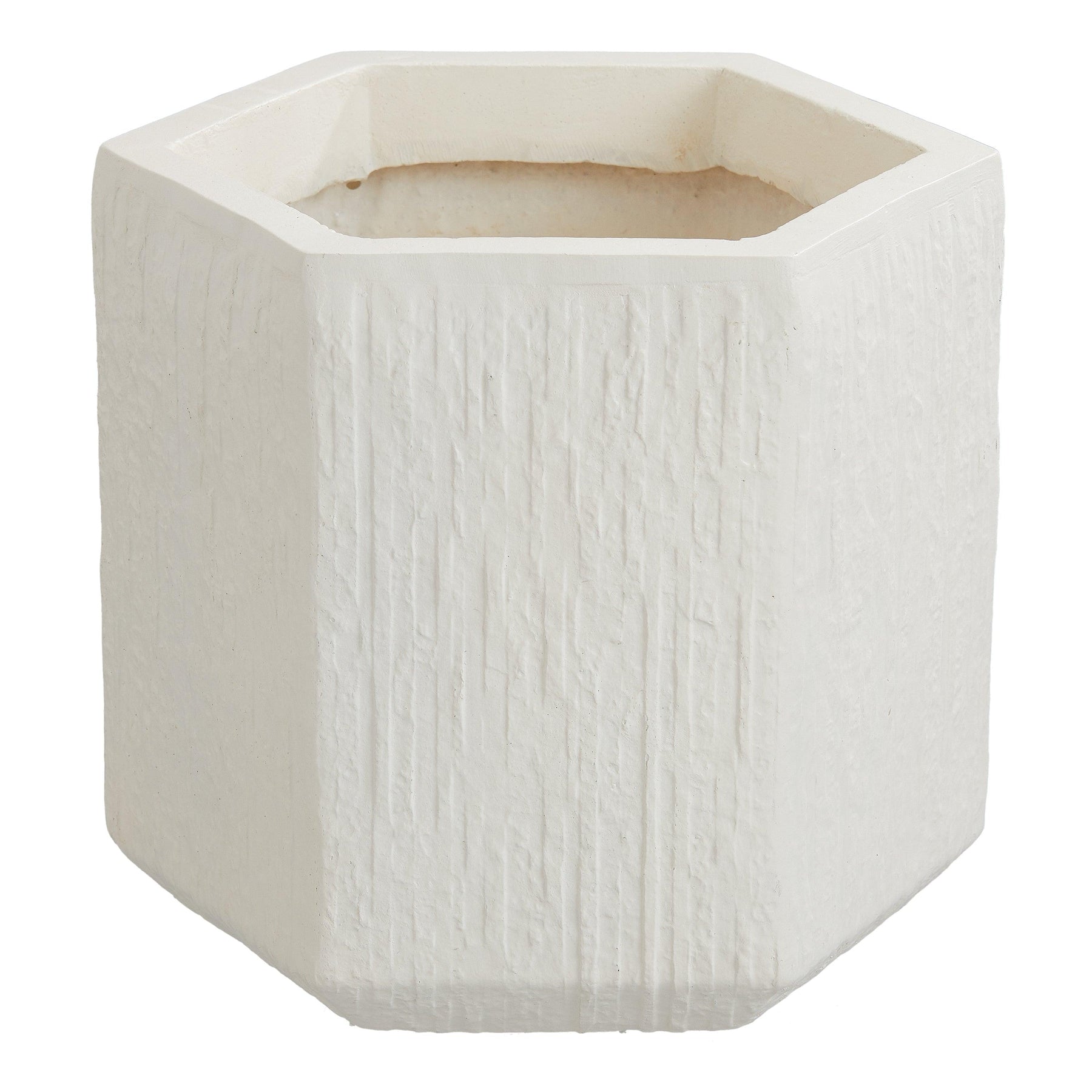 Mainstays Hexagon Textured Clay Planter, Set of 2, Coconut Milk