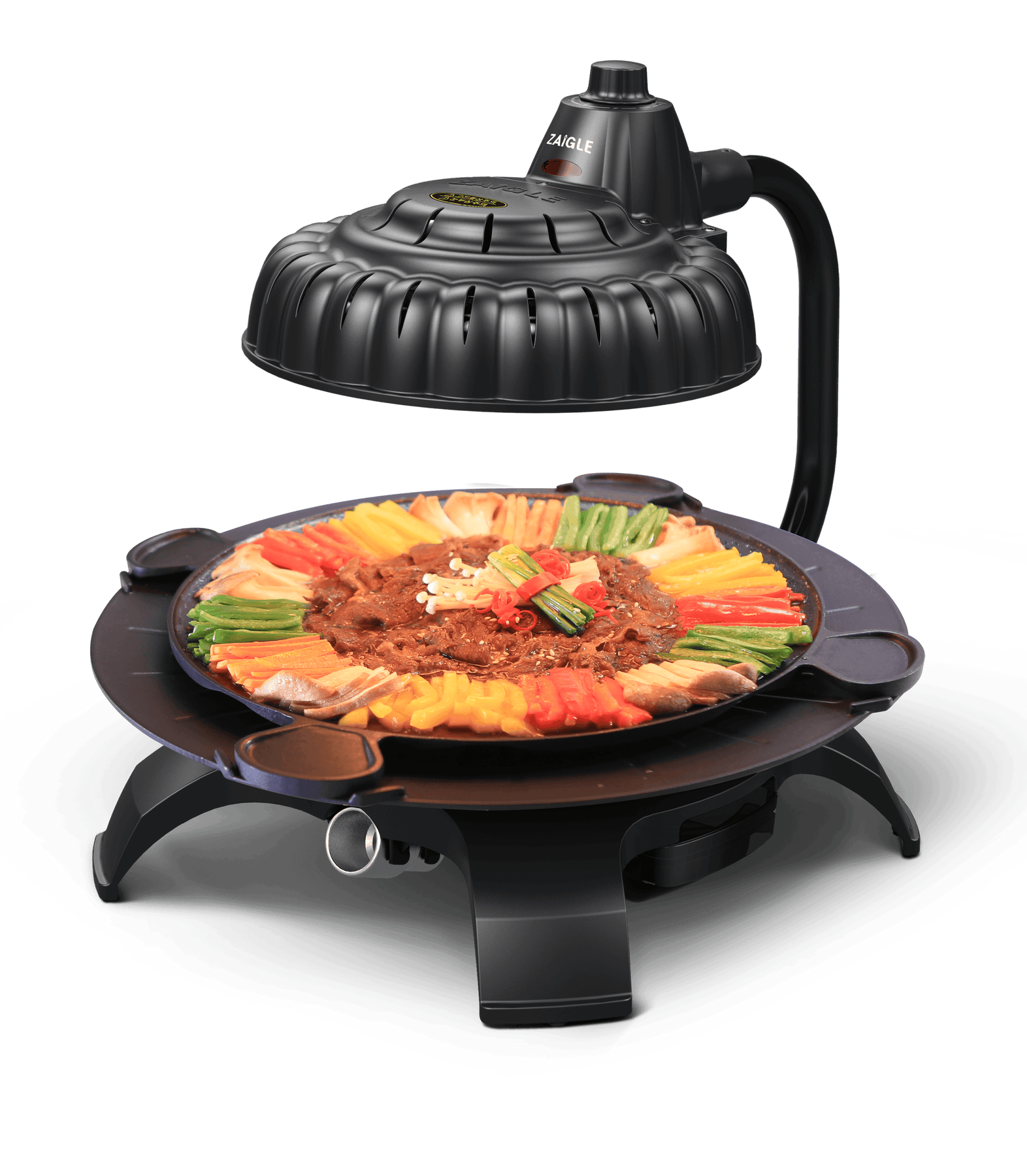 Zaigle ZG-HU375 Handsome Infrared KBBQ Electric Grill, 120v, 3 pans, tongs included