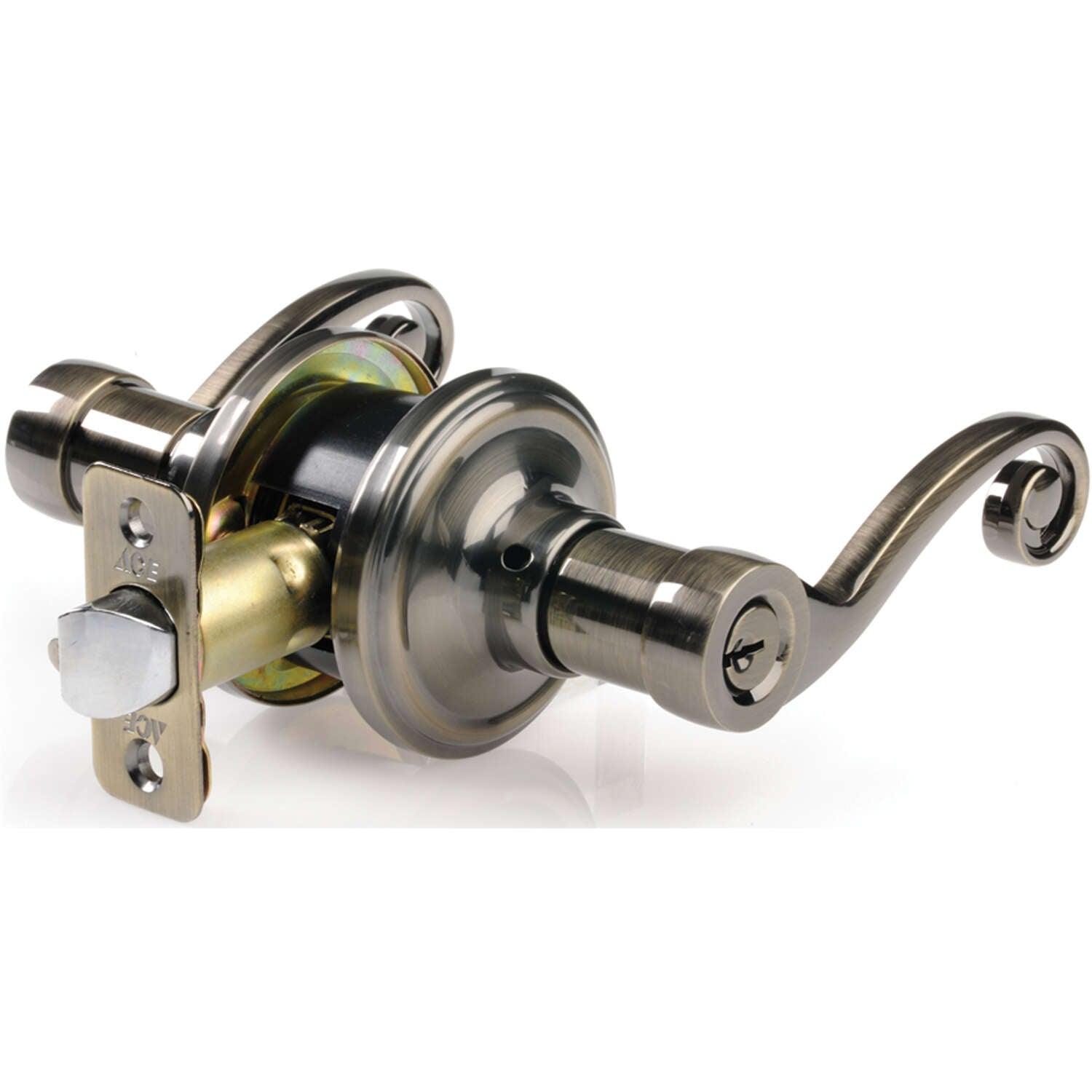 Ace Scroll Antique Brass Entry Lockset ANSI/BHMA Grade 3 1-3/4 in.