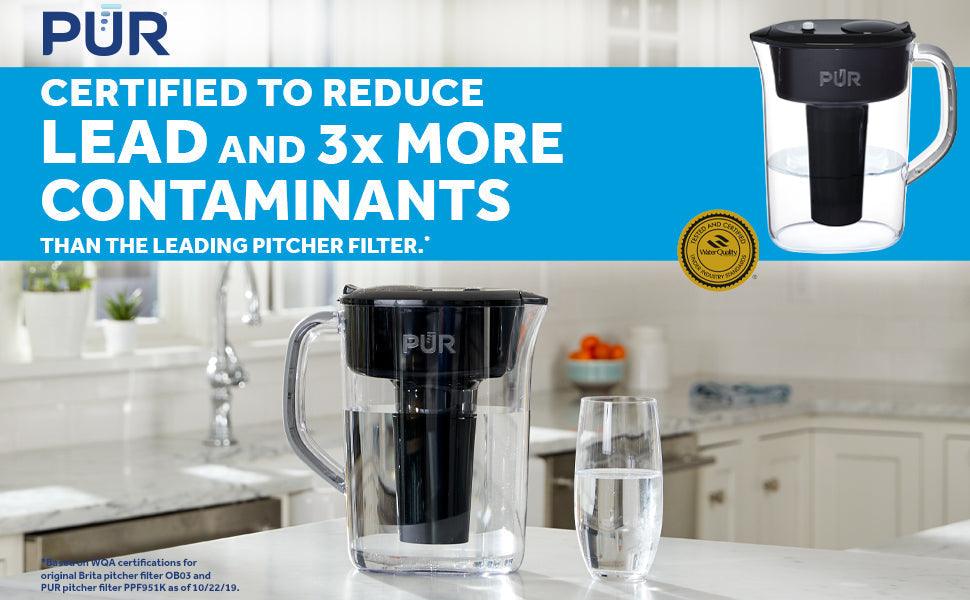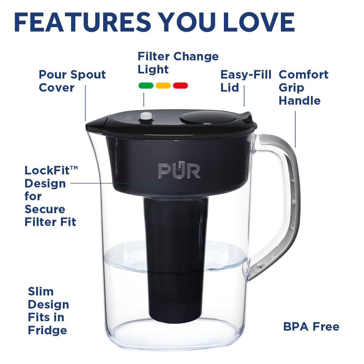 PUR Water Pitcher Filter with Lead Reduction, 7 Cup, PPT711B, Black