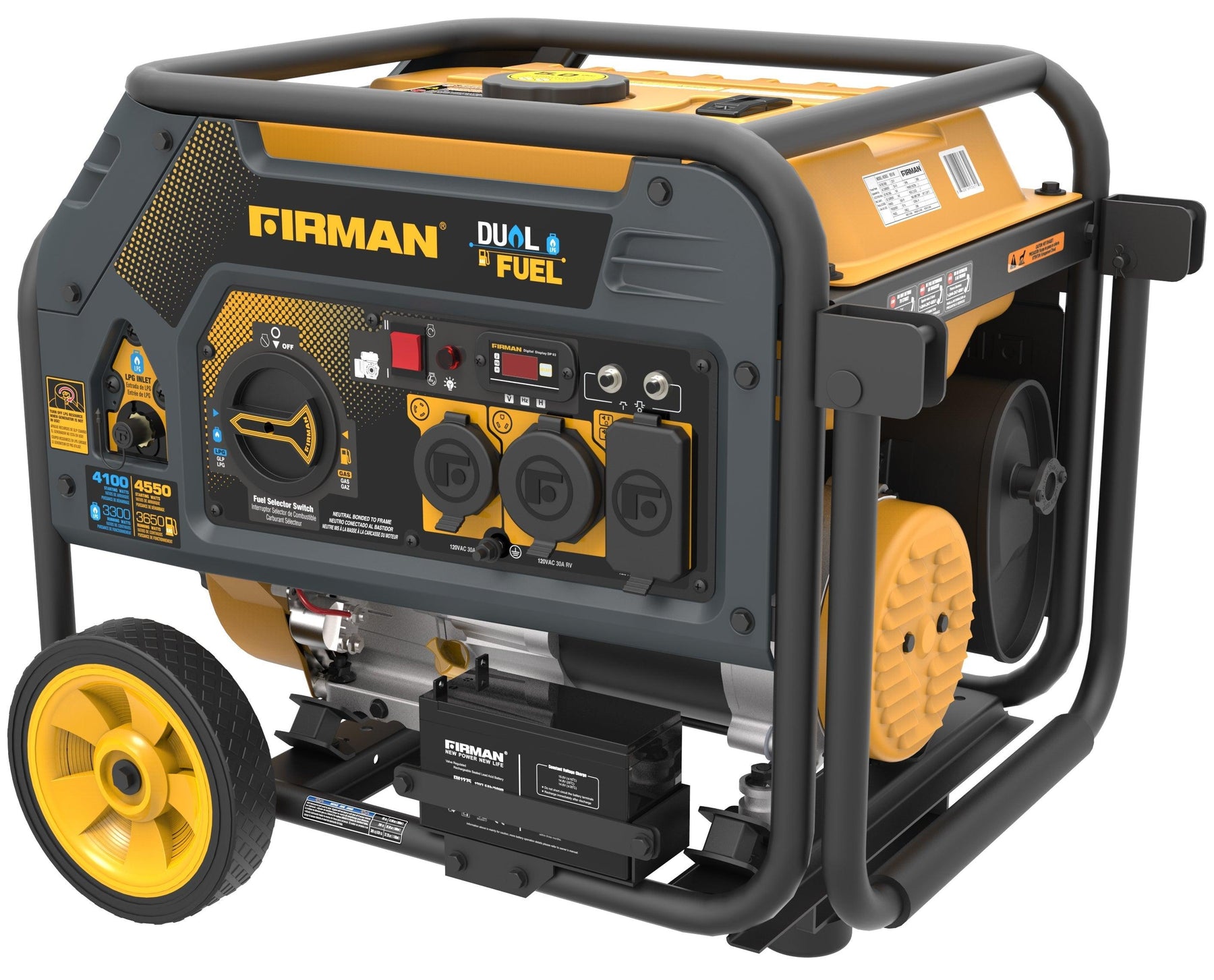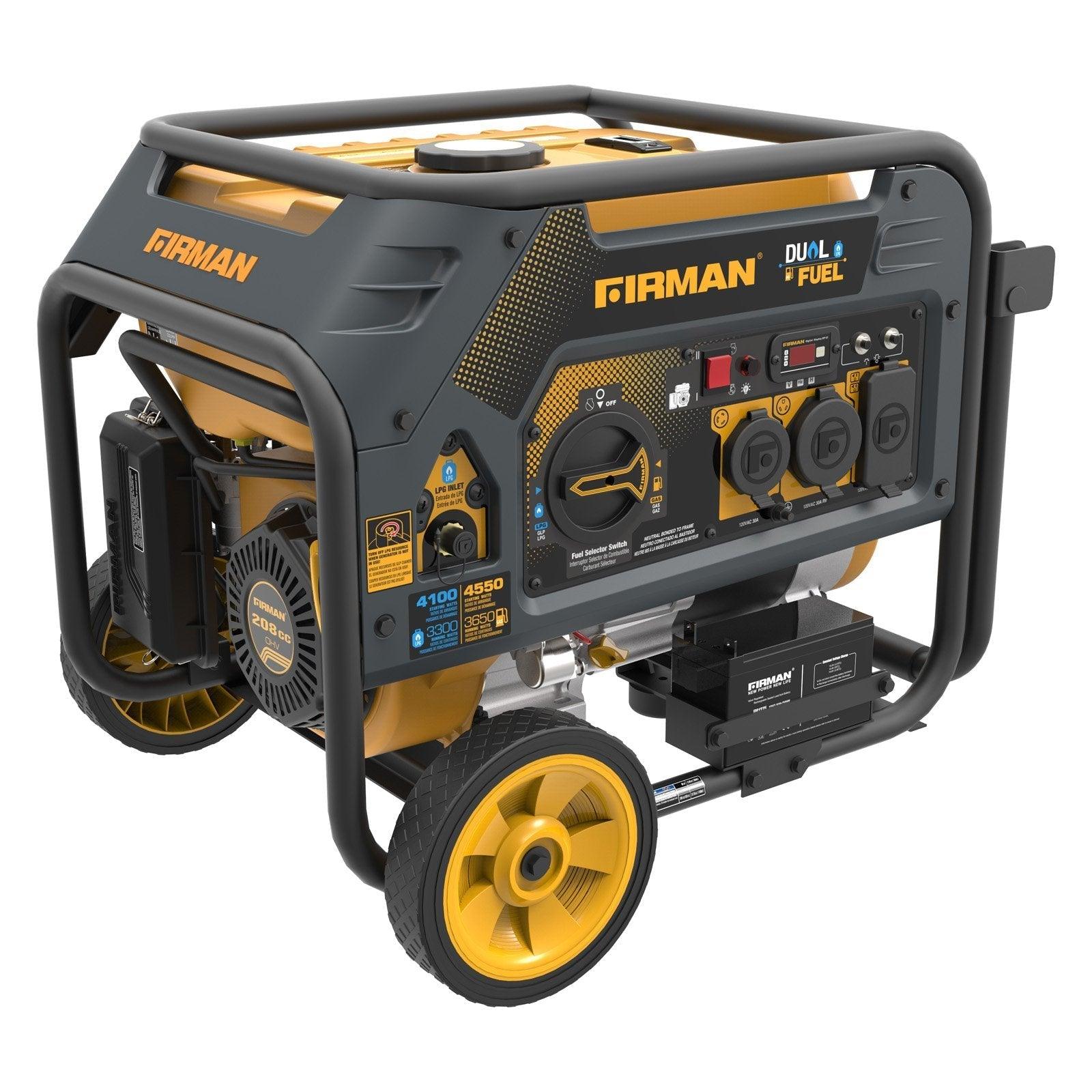 FIRMAN 4550/3650 Watt Electric Start Gas or Propane Dual Fuel Portable Generator CARB and cETL Certified