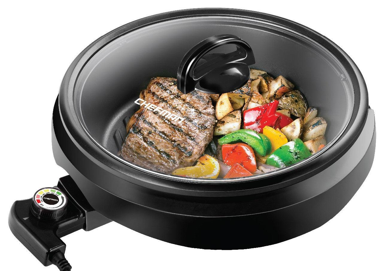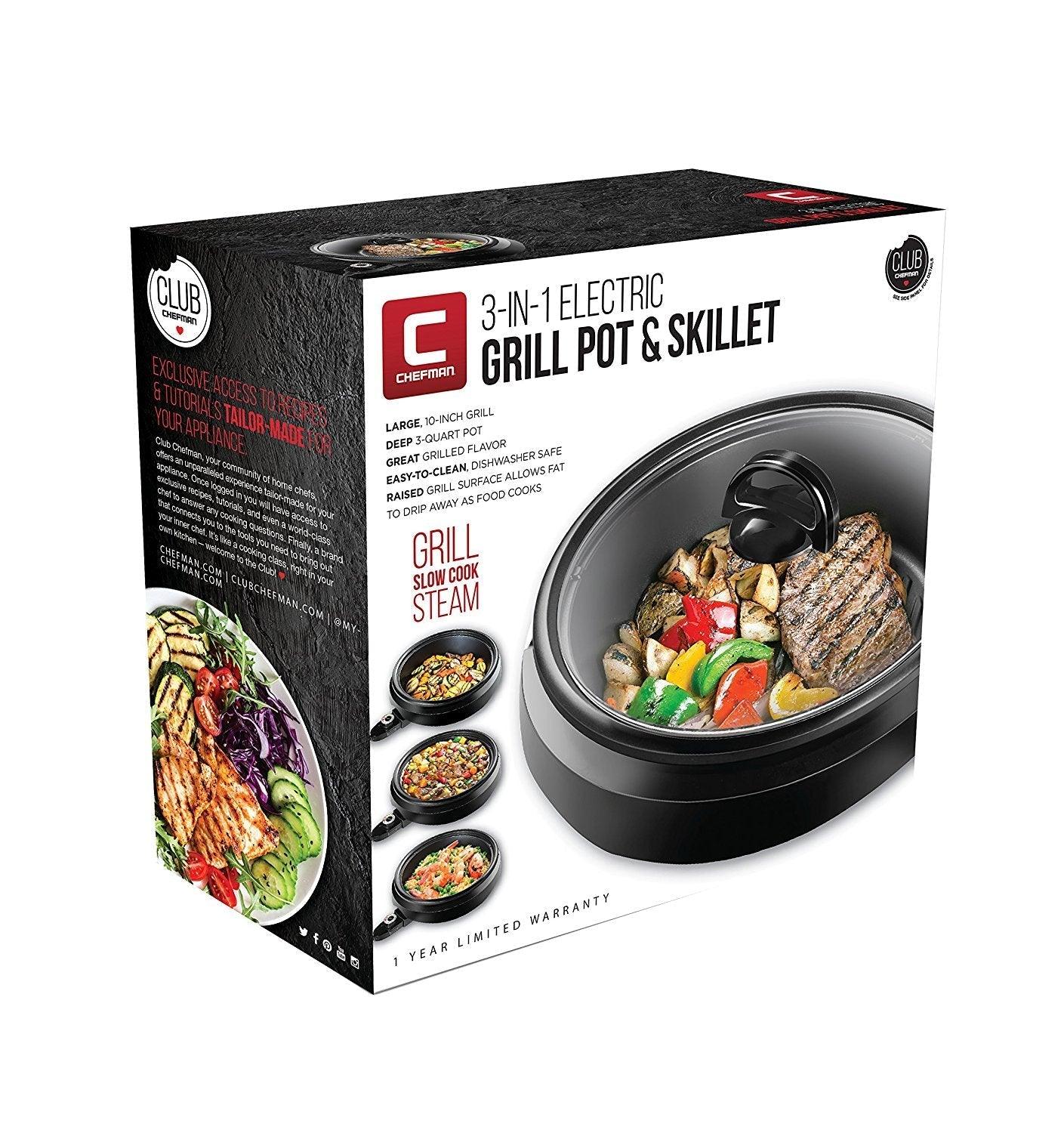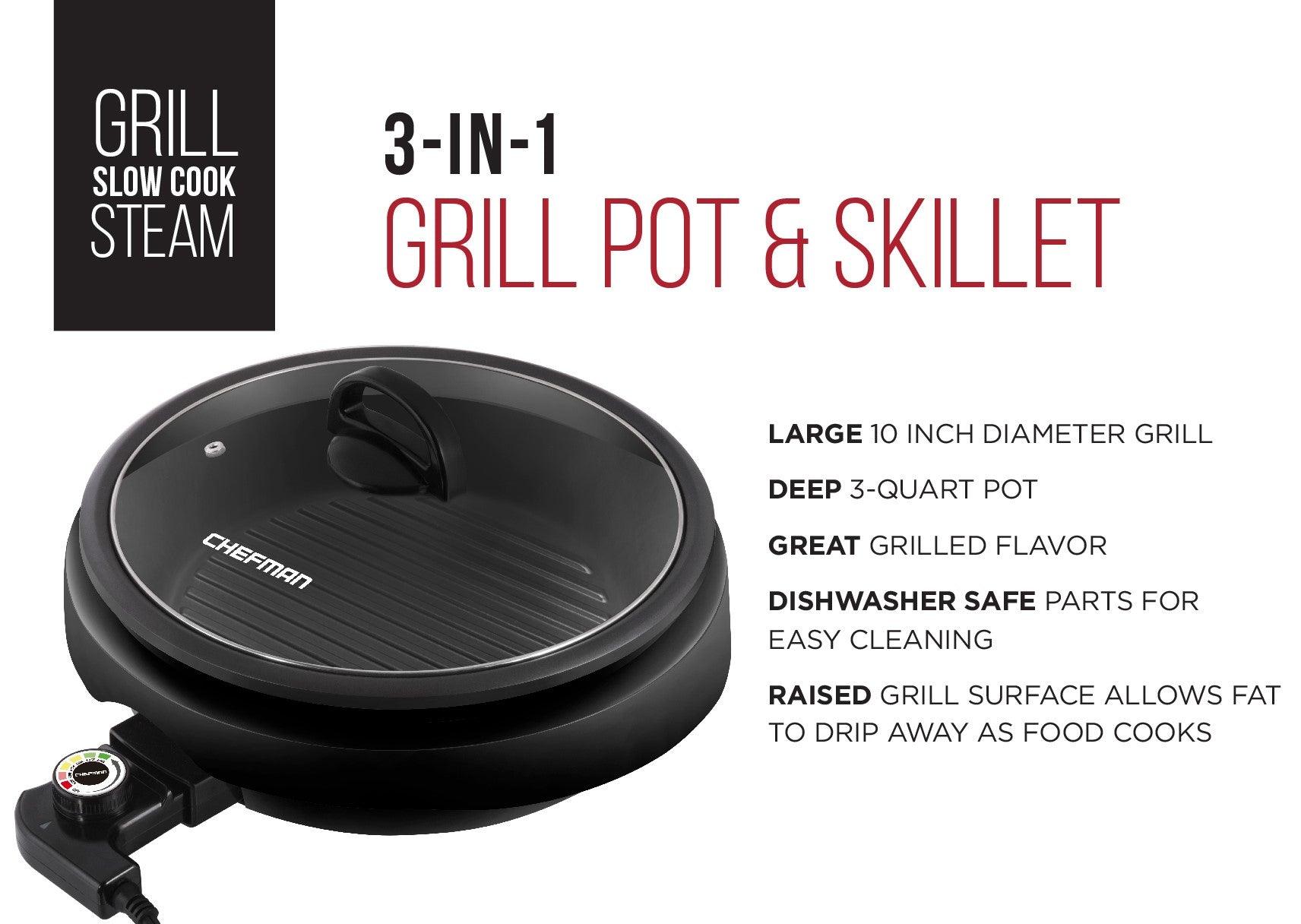 Chefman 3-in-1 Electric Grill Pot Skillet, Slow Cooker & Steamer, 3qt Capacity, Dishwasher Safe