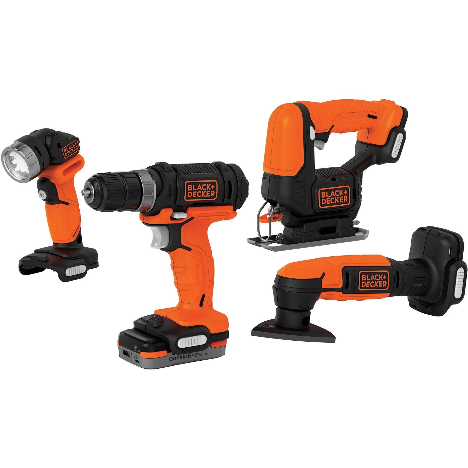 BLACK+DECKER Gopak 4-Tool Combo Kit (Drill/Jig/Sander/Light), BDCK502C1