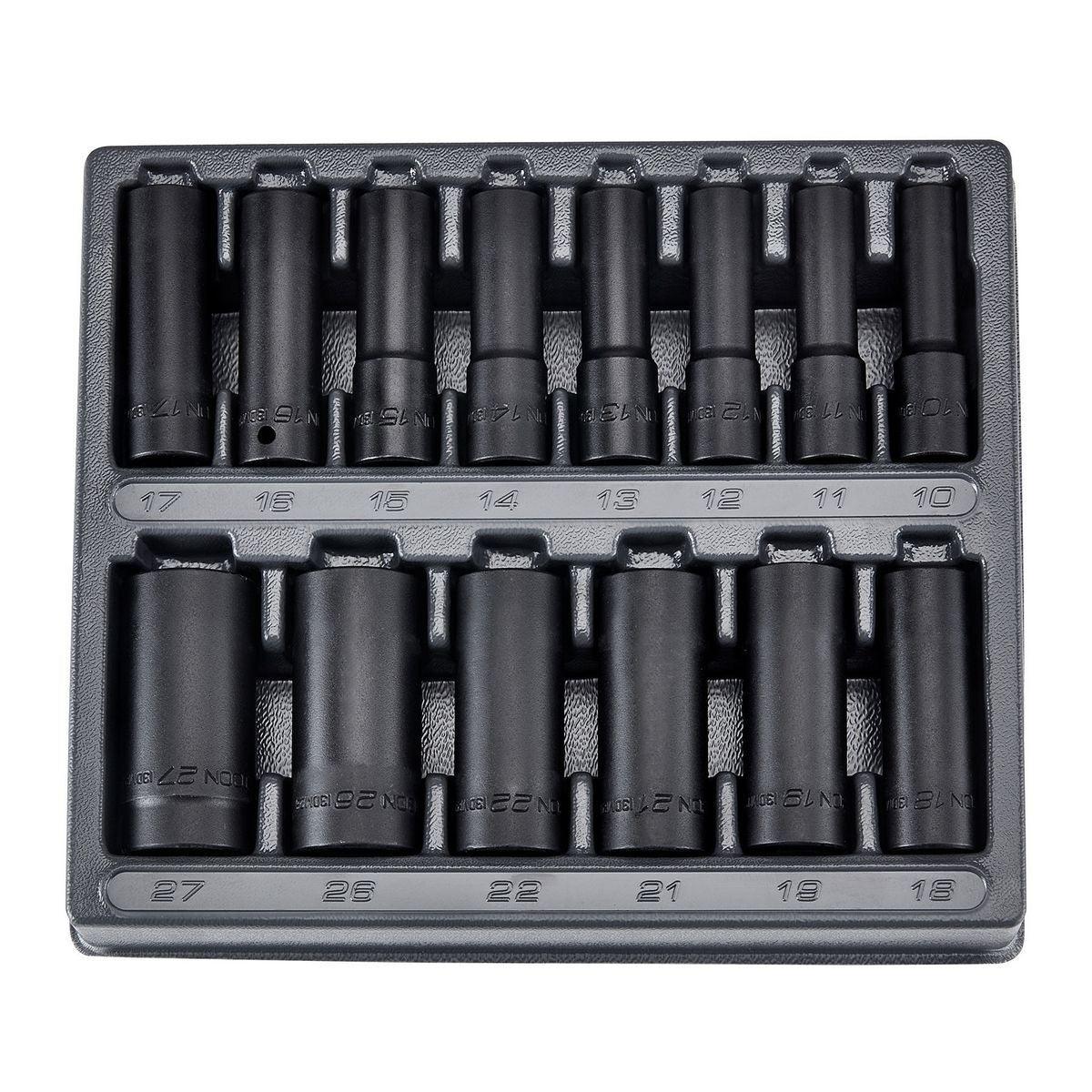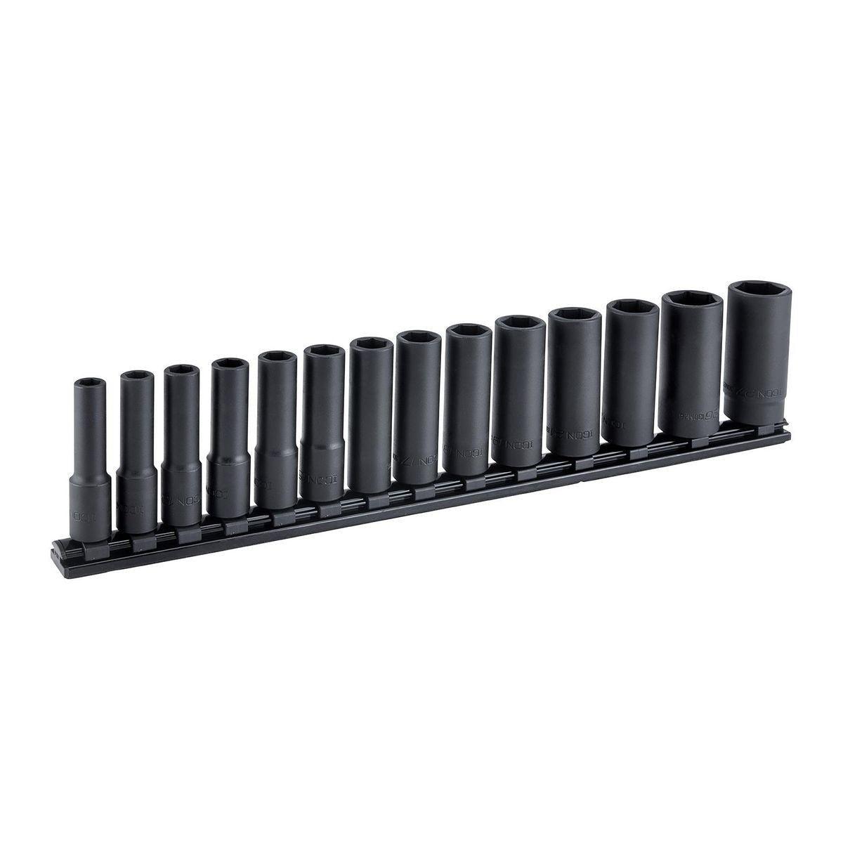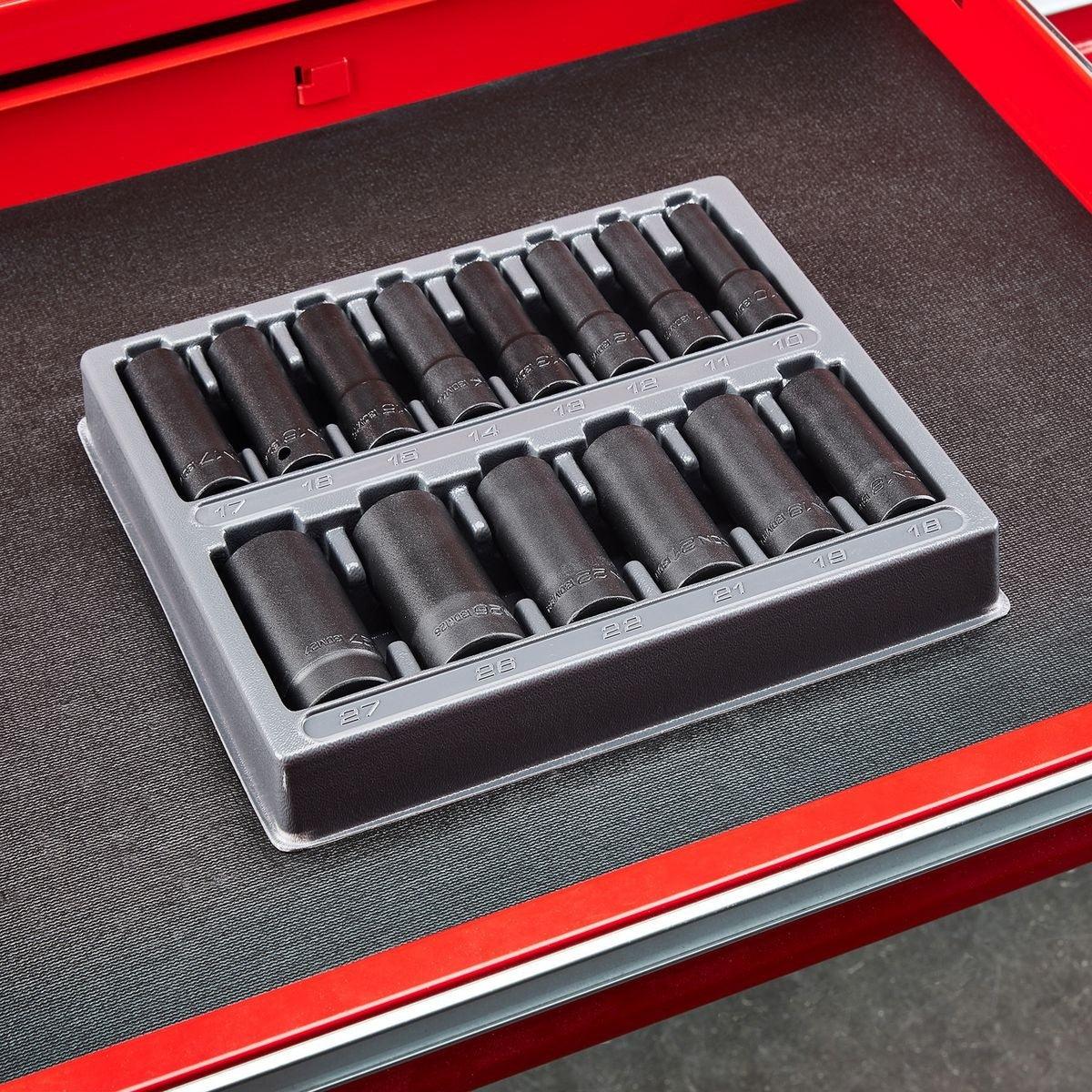Icon™ Professional Impact Sockets are designed to stand up to professional shop use. We use a premium heat treated chrome moly steel, with a durable black phosphate finish that offers superior strength and corrosion resistance. All Icon™ sockets have a 6 point design for maximum torque, chamfered socket openings for quick fastener engagement, and a thin wall design for easy access on difficult fasteners. All impact sockets feature a semi-shallow hex depth to keep the fastener near the end of the socket for more efficient work. We've also added easy to read size markings, and included a premium storage tray to help keep your tools organized. Like the rest of the Icon™ hand tools, these sockets are backed by a hassle-free, manufacturer’s lifetime warranty.