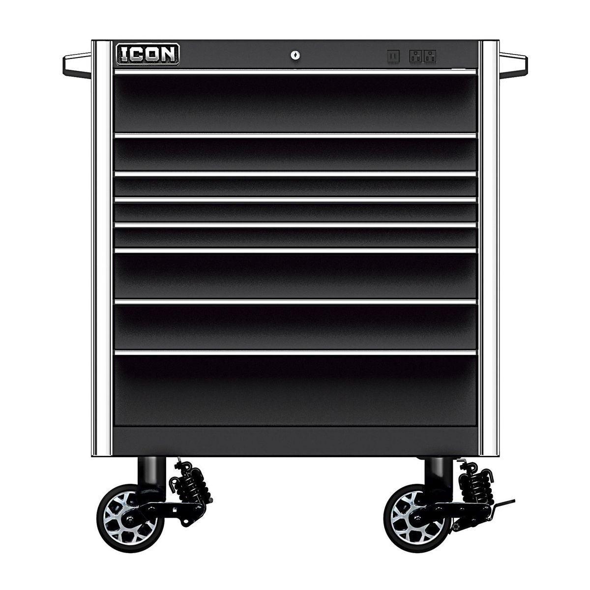 Built with the strongest steel and precision reinforced welds, Icon™ storage is tough enough for the daily grind of a busy shop…and you don’t have to break the bank to get the tool cabinet you deserve. Every Icon™ cabinet features a double-wall steel frame for ultimate strength. Industry-leading 16-gauge top and outside panels prevent dents and withstand the demands of daily use, and 18-gauge inside panels evenly support drawer and slide weight. Structural corner brackets prevent cabinet twist and racking. Under every Icon™ roller cabinet, three 14-gauge U channels distribute weight evenly to the industry-leading 2,000-pound-rated suspension casters with easy locks, so these boxes glide into place easily and stay in place securely. With a staggering 8,000-pound capacity, Icon™ roller cabinets are more than double the overall weight capacity of comparably sized Snap-On cabinets. These boxes are beautiful. Their premium ultra-tough powder-coat finish will withstand harsh chemicals and provide a showroom finish that looks like new, even after years of punishing use. Every drawer features the highest-quality ball bearing full extension drawer slides that support up to 265 pounds per set—or 530 pounds for drawers with double slides—even more than Snap-On’s Masters Series. An adjustable-force drawer latch system lets you dial-in just the right amount of force to keep drawers from opening when they should be closed. And heavy-duty non-slip drawer liners will keep your tools in place...right where you put them. Icon™ storage features an integrated power system. The convenient exterior power is equipped with two fast-charging USBs and two 110V outlets. An advanced locking system turns your tool cabinet into a vault to keep your valuable tools safe and secure. The interchangeable core lock comes with security milled keys that allow you to key-alike all your Icon™ storage units as you expand. The base cabinets are offered in three sizes - 36, 56 and 73 inches. And all Icon™ storage comes in four colors: Red, Blue, Black and Green. All Icon™ storage comes with free door-to-door delivery and a lifetime warranty - plus, a full line of replacement parts is available. It’s the only storage solution you’ll ever need.