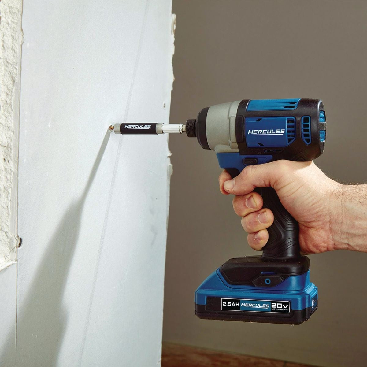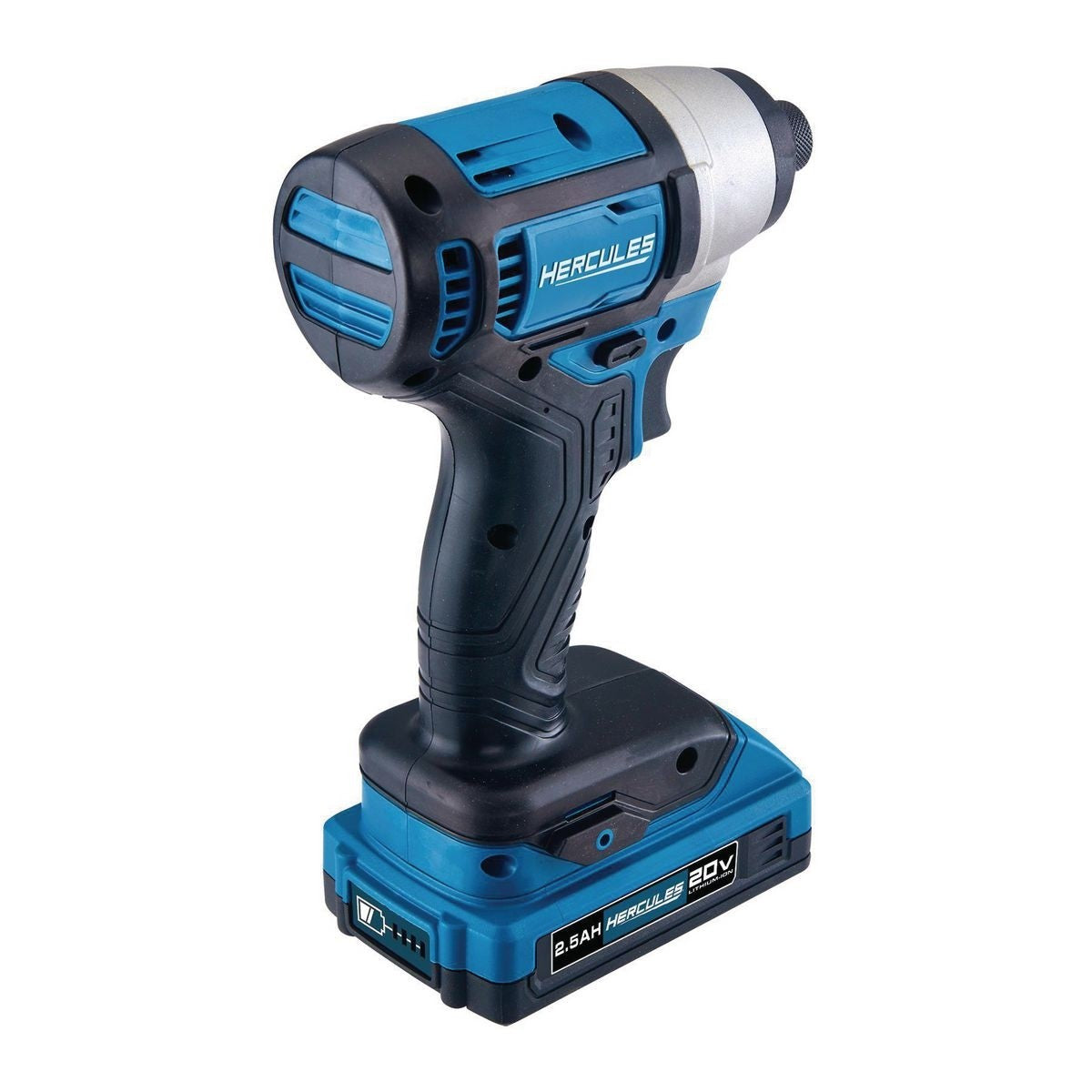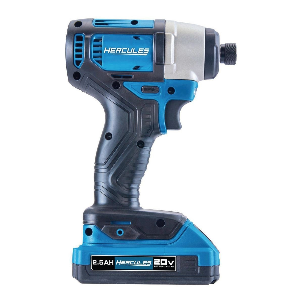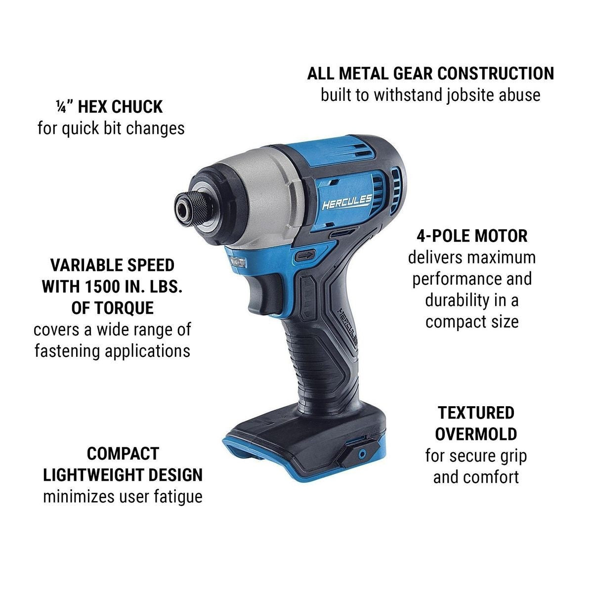 The jobsite tough 20v Hercules® cordless compact 1/4 in. hex impact driver produces 1500 in. lbs. of torque and 0-3200 IPM to handle a wide range of fastening applications including work on decking, fencing, or drywall. A built-in LED light with delay after trigger release gives you a clear view in dark spaces. Combined with the Hercules® Lithium-Ion battery system for fast charging and longer run times this tool delivers legendary performance. Buy with confidence with an included no-questions-asked risk-free trial, with additional coverage up to 2 years.