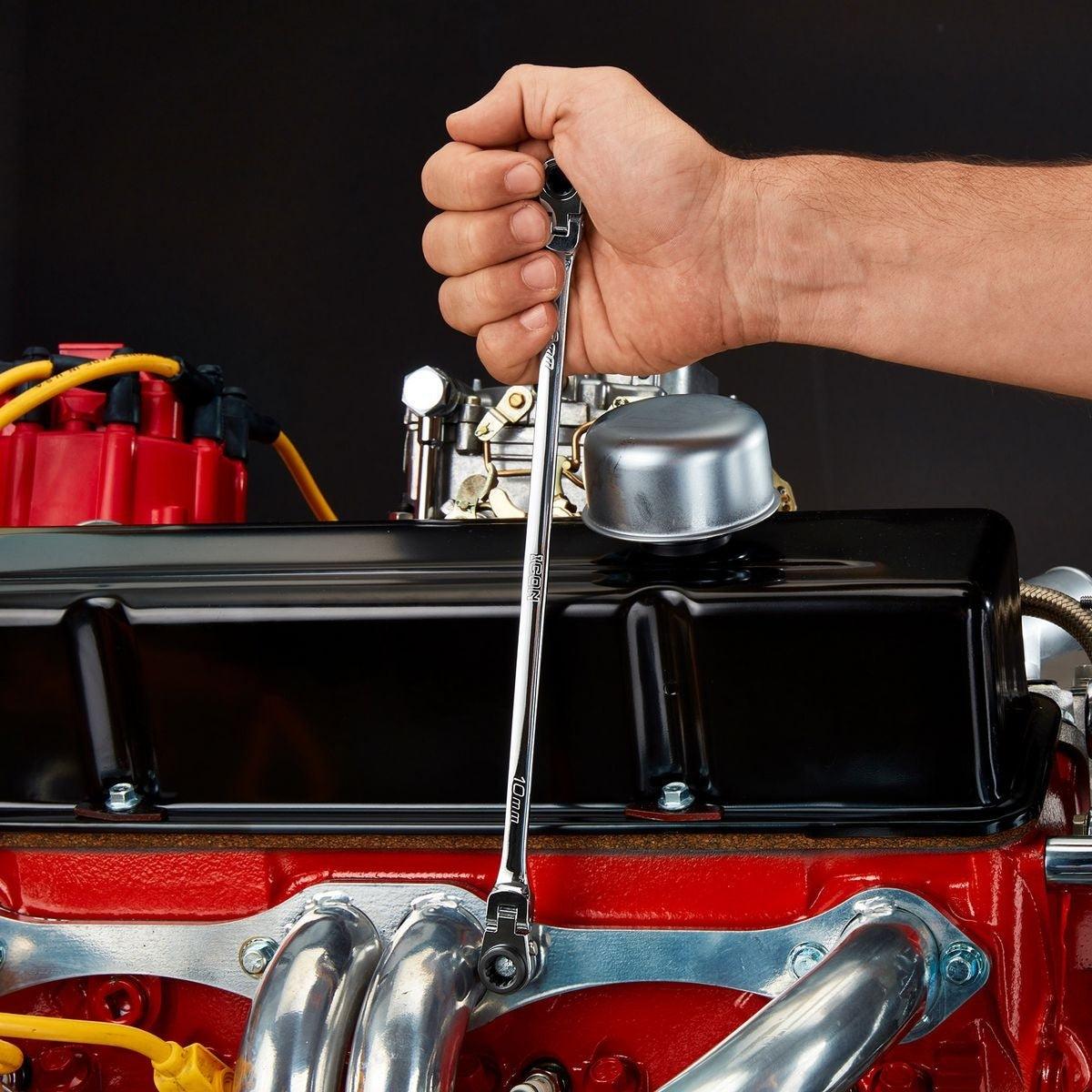 The Icon™ Professional Double Box Flex Ratcheting Wrench is precision-machined for a perfect non-slip grip, and features a 90 tooth reversible ratcheting box end for easy fastener engagement without slippage and prevents fastener round-off, resulting in more efficient work. We use a premium chrome vanadium steel, with a tough and durable polished chrome finish that offers superior rust and corrosion resistance and prevents grease build-up. The flex box ends make it easier to work in tight spaces and reach around obstructions. Designed with comfort and efficiency in mind, the Icon™ Professional Double Box Flex Ratcheting Wrench offers a balanced handle design for a comfortable secure grip, and is backed by a hassle-free manufacturer's lifetime warranty.