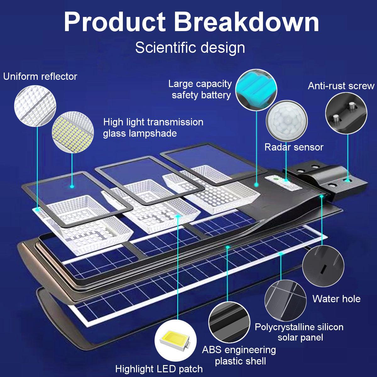 240W/480W Solar Street Light Outdoor Parking Lot Lights LED Solar Light PIR Motion Sensor Remote Control Wall Timing Lamp Garden Path Security Area Lighting