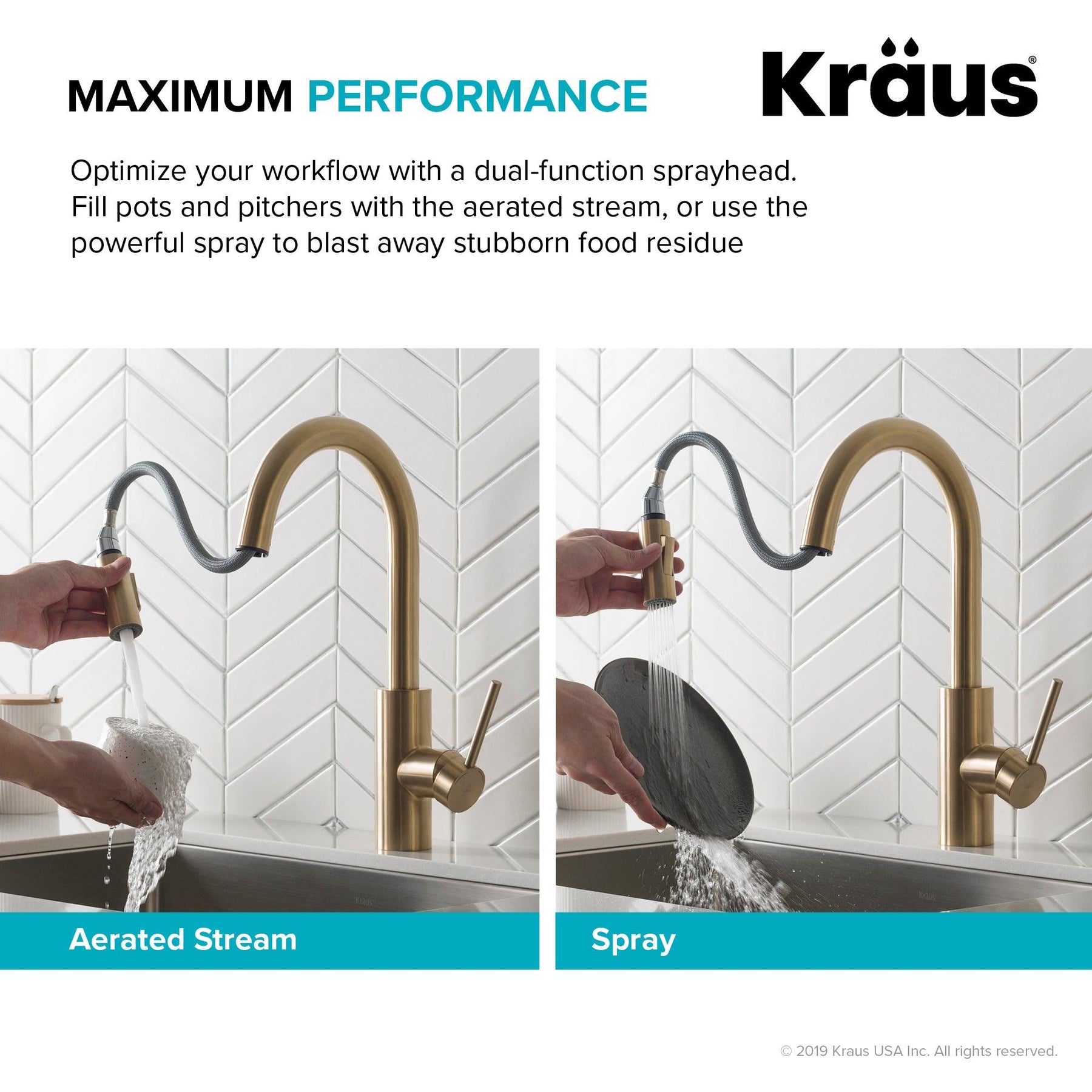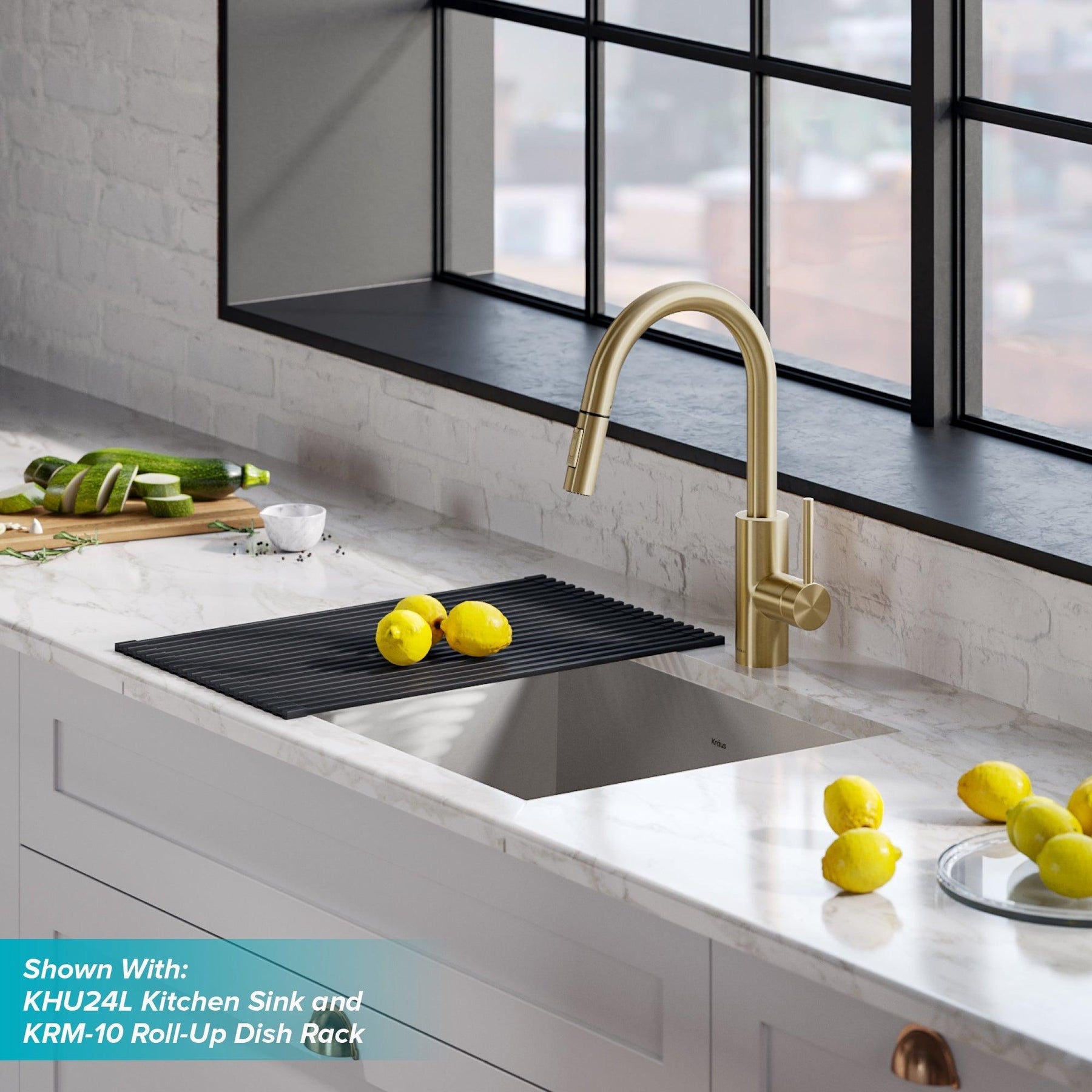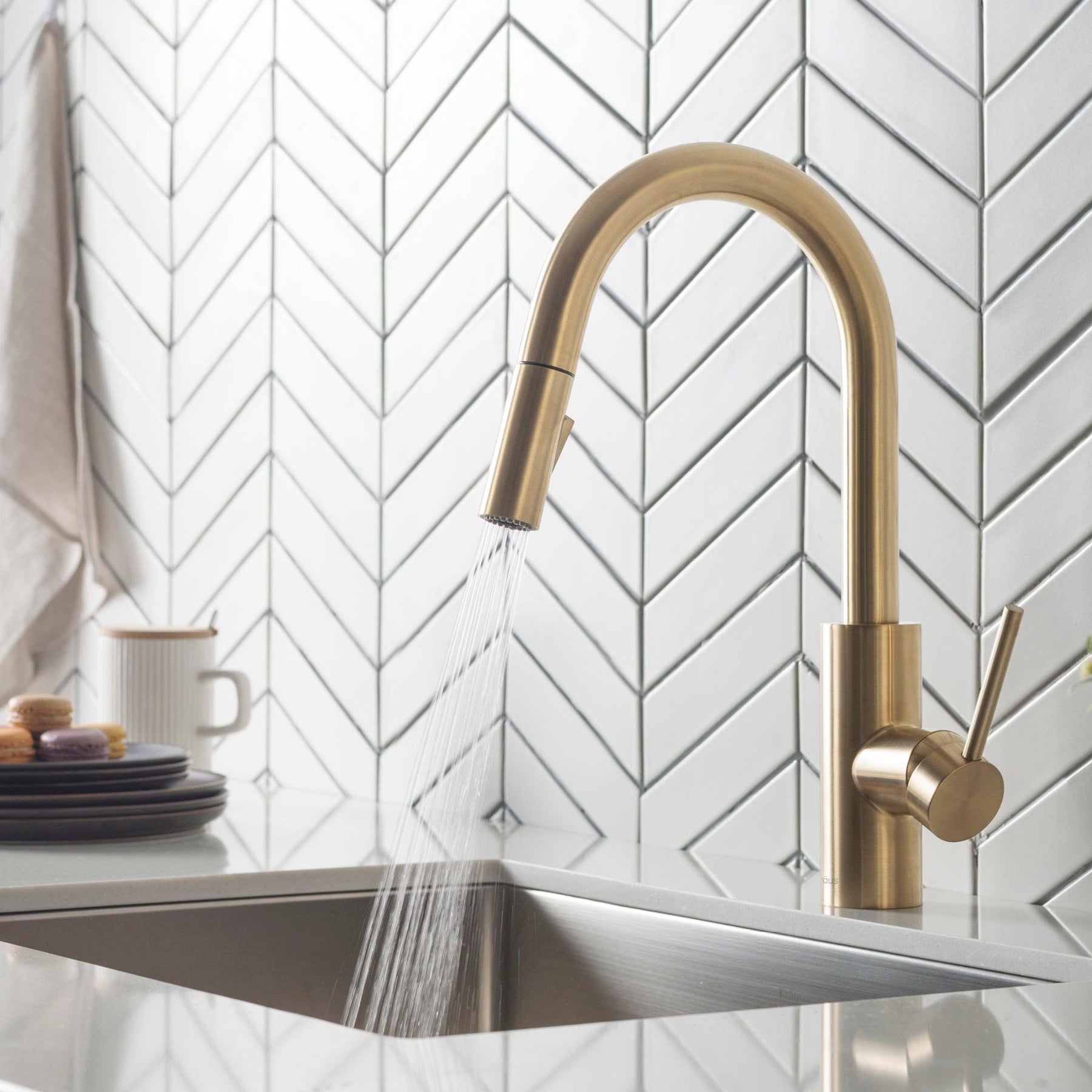 KRAUS Oletto Single Handle Pull Down Kitchen Faucet in Brushed Brass Finish