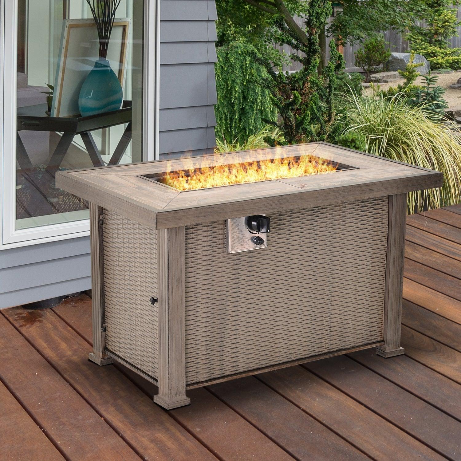 Outsunny 42" 50,000 BTU Outdoor Patio Backyard Gas Fire Pit Table with Beautiful Slate Tabletop & Wicker Design