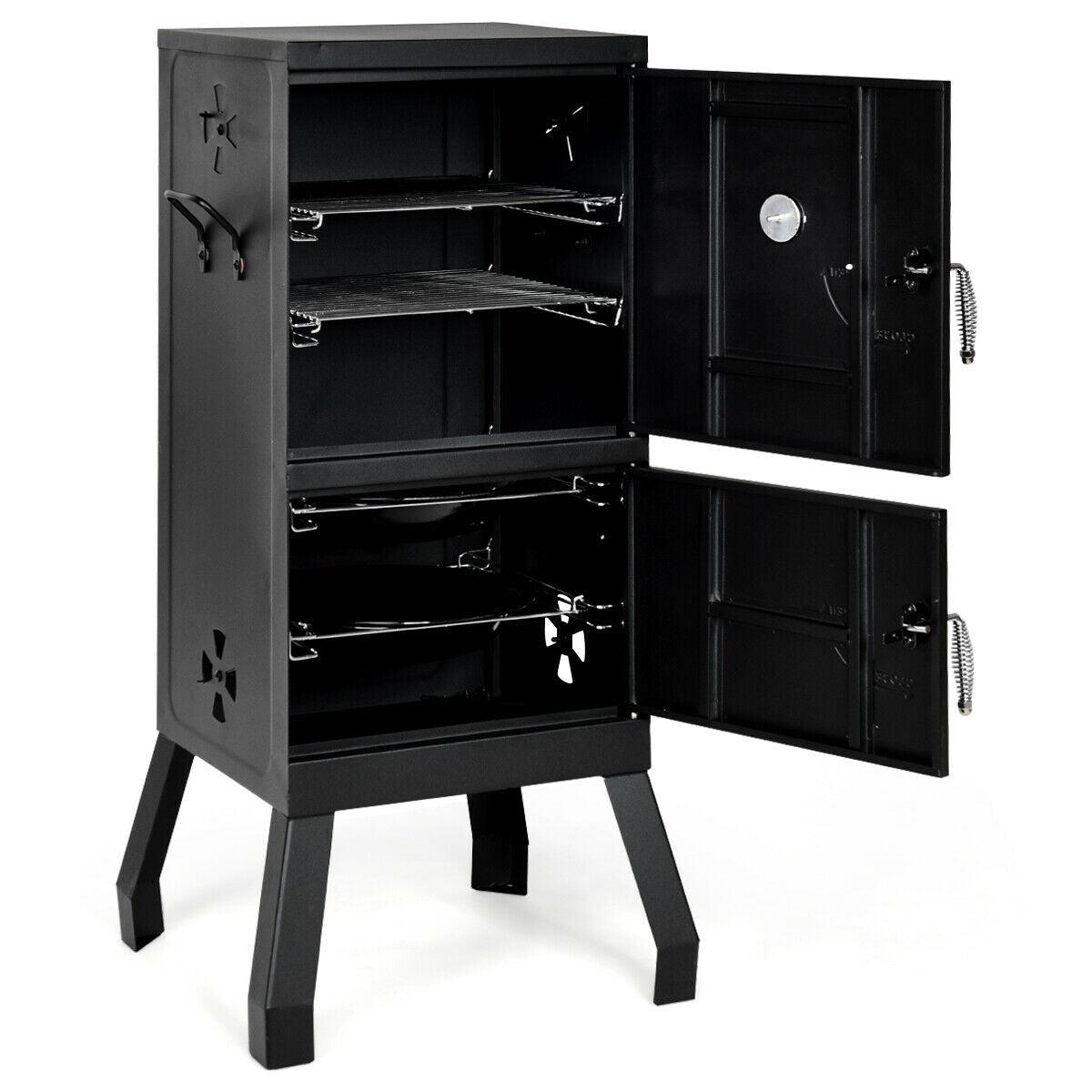 Outdoor Barbeque Grill - Black Iron Vertical 2-Tier Outdoor Charcoal Smoker Barbeque Grill with Temperature Gauge