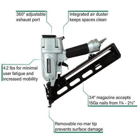 Metabo HPT 2-1/2-Inch 15-Gauge Angled Finish Nailer With Air Duster, NT65MA4M