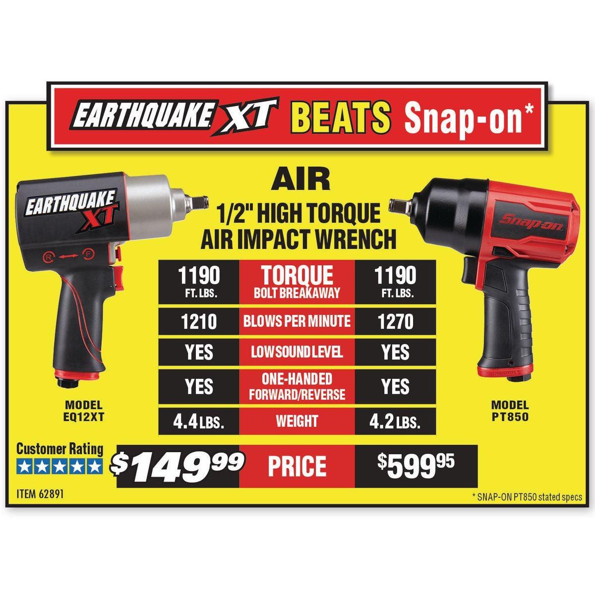 This professional grade air wrench handles the toughest jobs with no sweat. The composite impact wrench delivers a pounding 1190 ft. lbs. of bolt breakaway torque. The lightweight composite handle reduces strain.