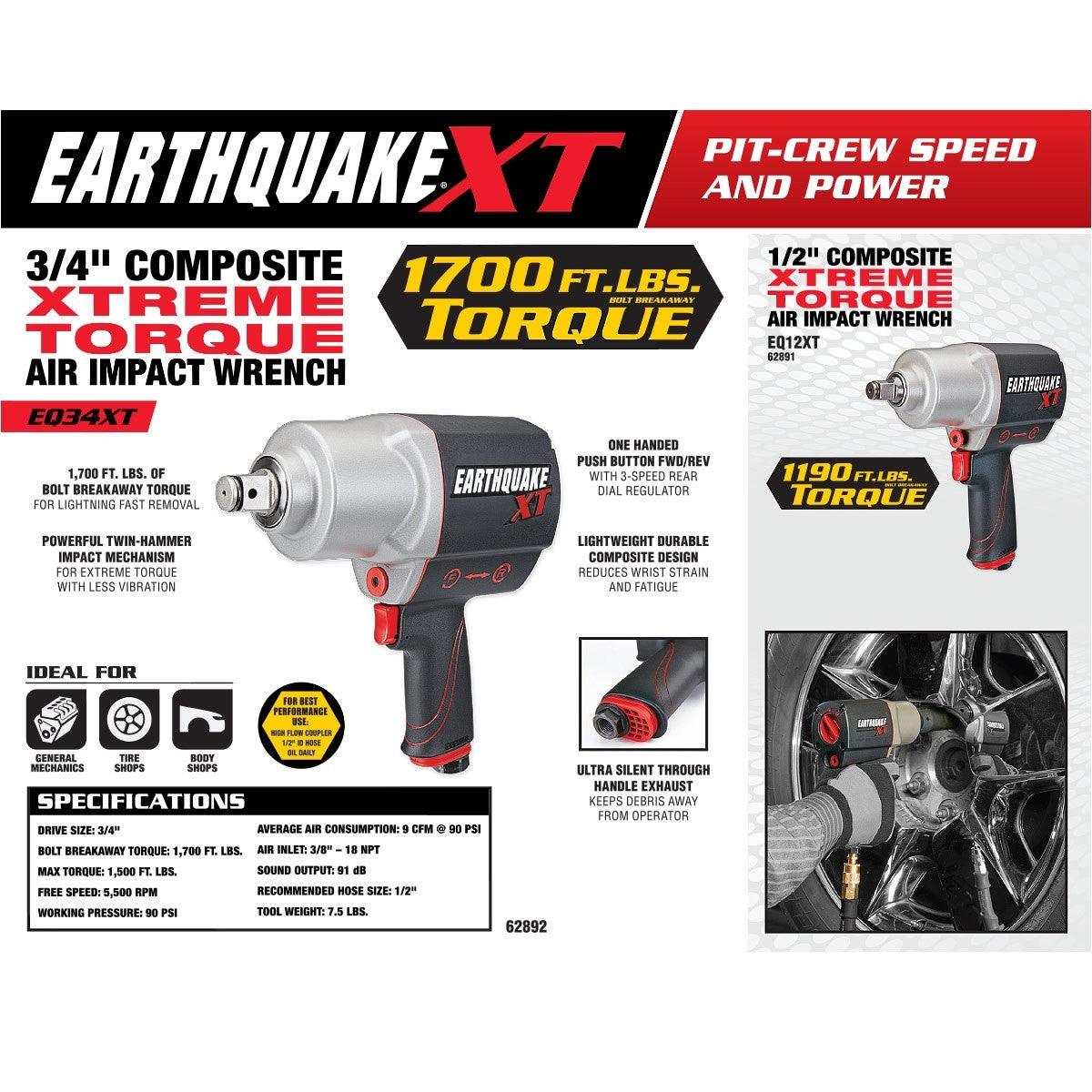 This professional grade air wrench handles the toughest jobs with no sweat. The composite impact wrench delivers a pounding 1700 ft. lbs. of bolt breakaway torque. The lightweight composite handle reduces strain.