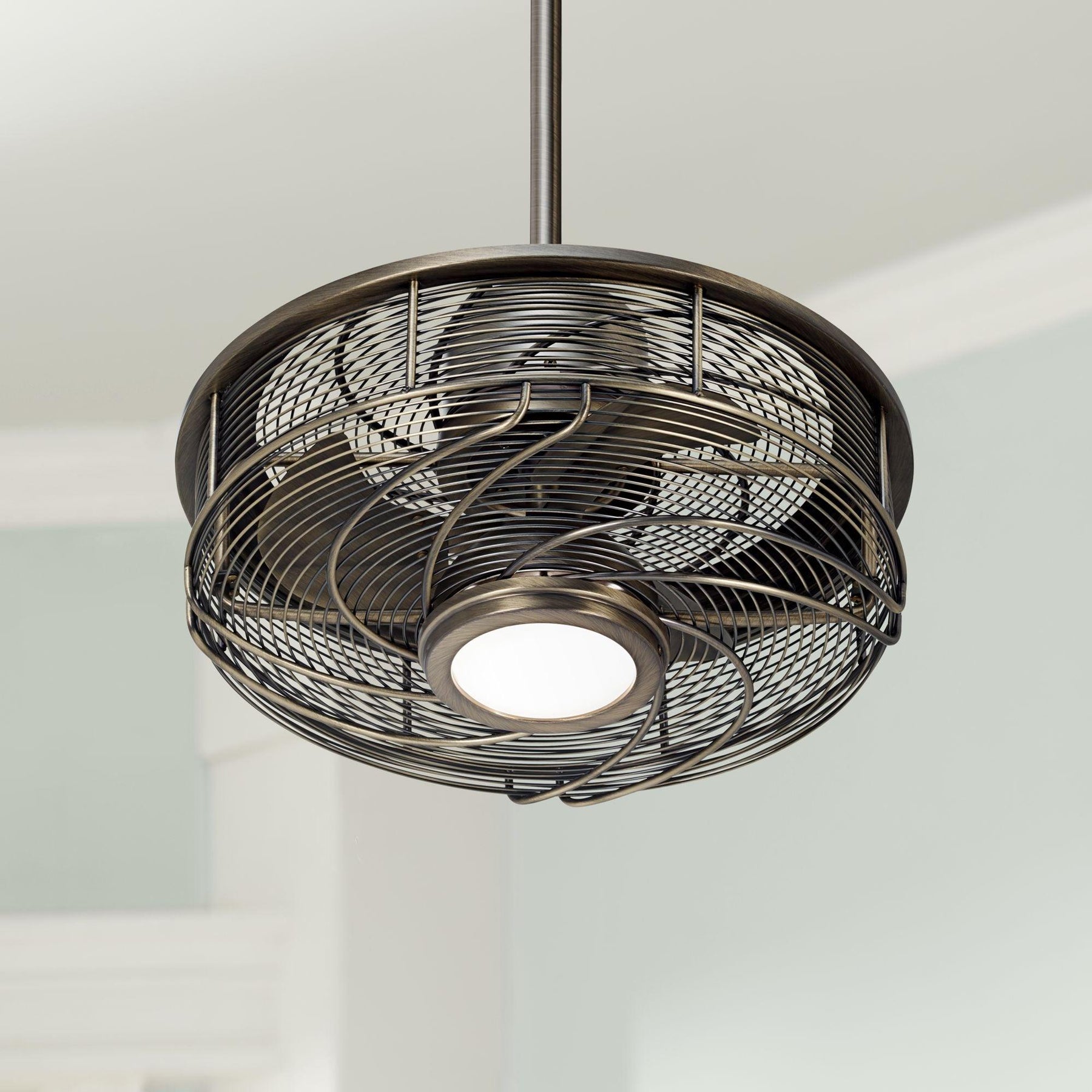 17" Casa Vieja Modern Outdoor Ceiling Fan with Light LED Cage Antique Bronze Frosted White Glass Damp Rated for Patio Porch