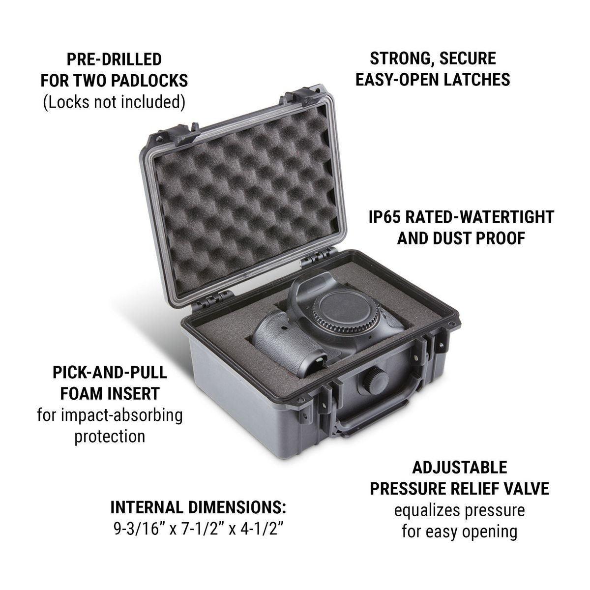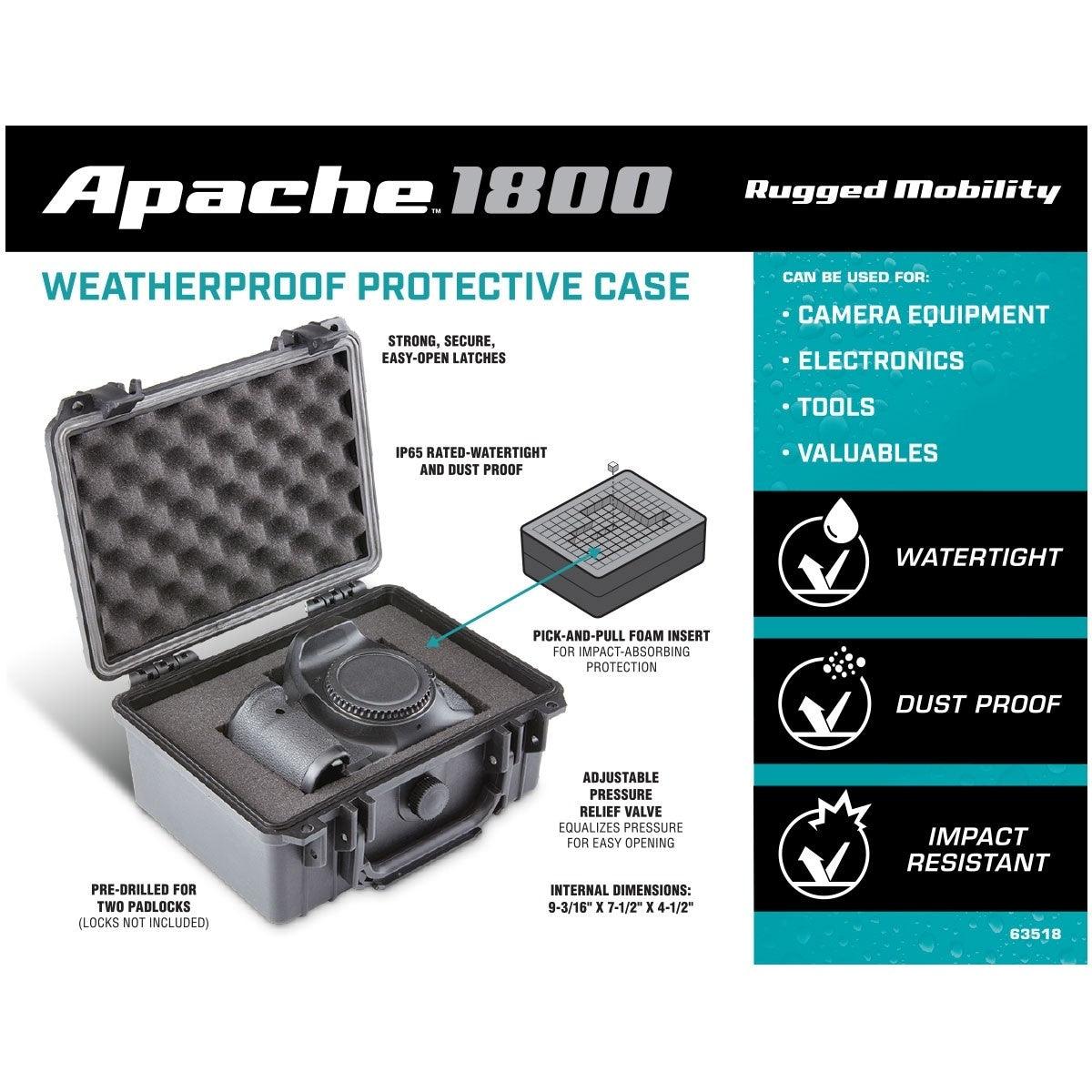 Protect cameras, microphones, handguns and other specialized equipment with this exceptionally rugged Apache® weatherproof storage case. Constructed from extremely durable polypropylene, this professional quality hard case takes a beating while protecting the contents from impact, moisture and microscopic dust. The built-in purge valve equalizes pressure so you can open the case after changing elevations.