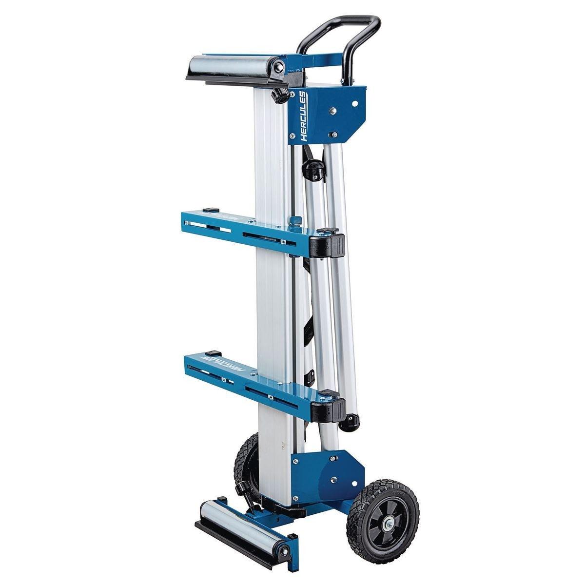 The Hercules® Aluminum Miter Saw Stand is designed for portability and durability while also being easy to assemble. Built with a universal design it is compatible with most major miter saw brands. Made of lightweight aluminum, the extendable beams support over 8 ft. of material and up to 550 lb.. Quick-Release mounting brackets allow for easy mounting, repositioning and removing of miter saws. Combined with adjustable feet and 8 in. jobsite ready wheels; stability and mobility are no challenge to this stand. When not in use the stand folds vertically for compact storage. Buy with confidence with an included no-questions-asked risk-free trial, with additional coverage up to 2 years.