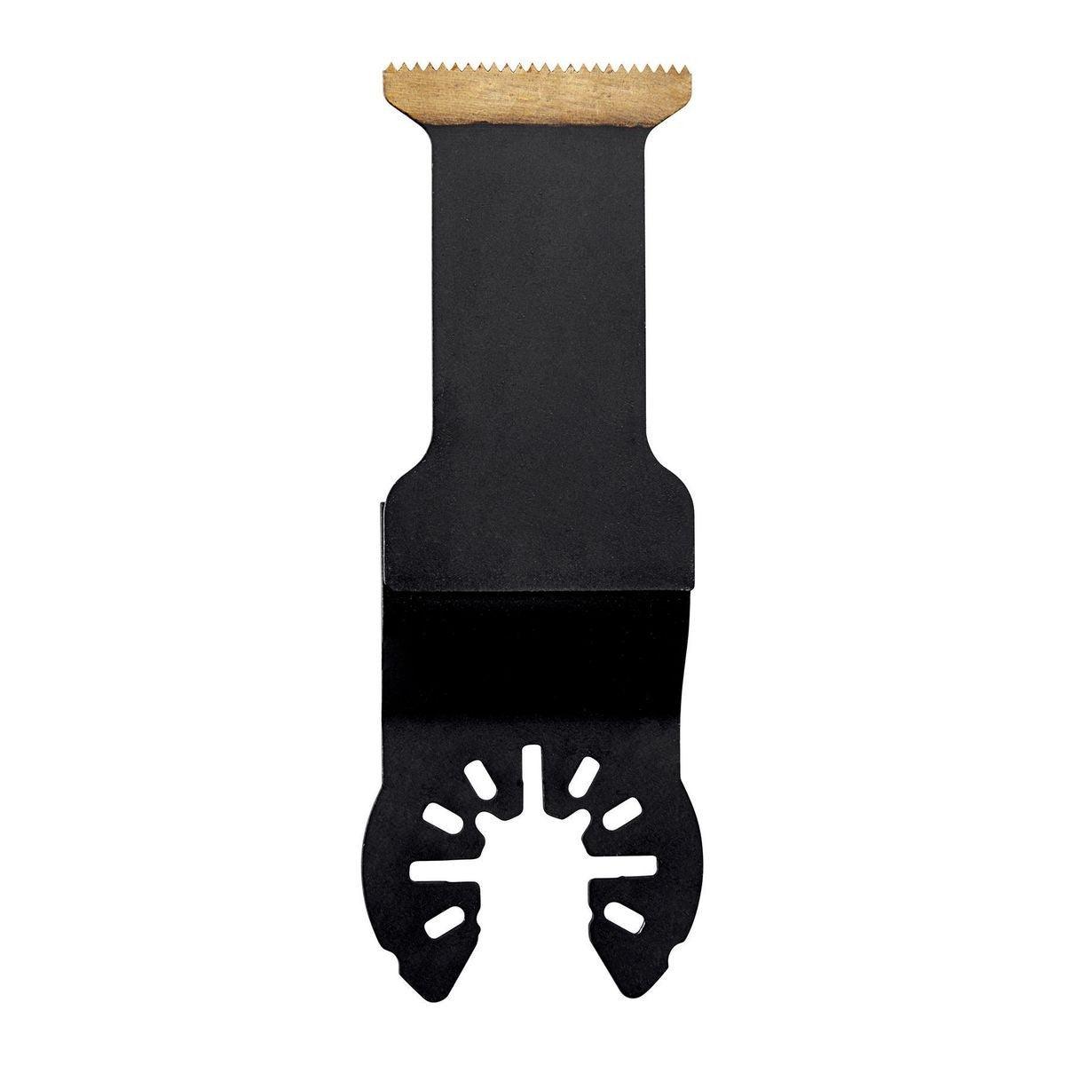 This Bauer™ bi-metal offset blade works with most brands of Multipurpose Oscillating Tools to make clean plunge and flush cuts in metal, plastic, drywall, wood and wood with nails. The blade is capable of plunge cuts to a depth of 1-5/8 in. and features extra sharp titanium coated teeth that cut fast and stay sharp. Ideal for demolition work.