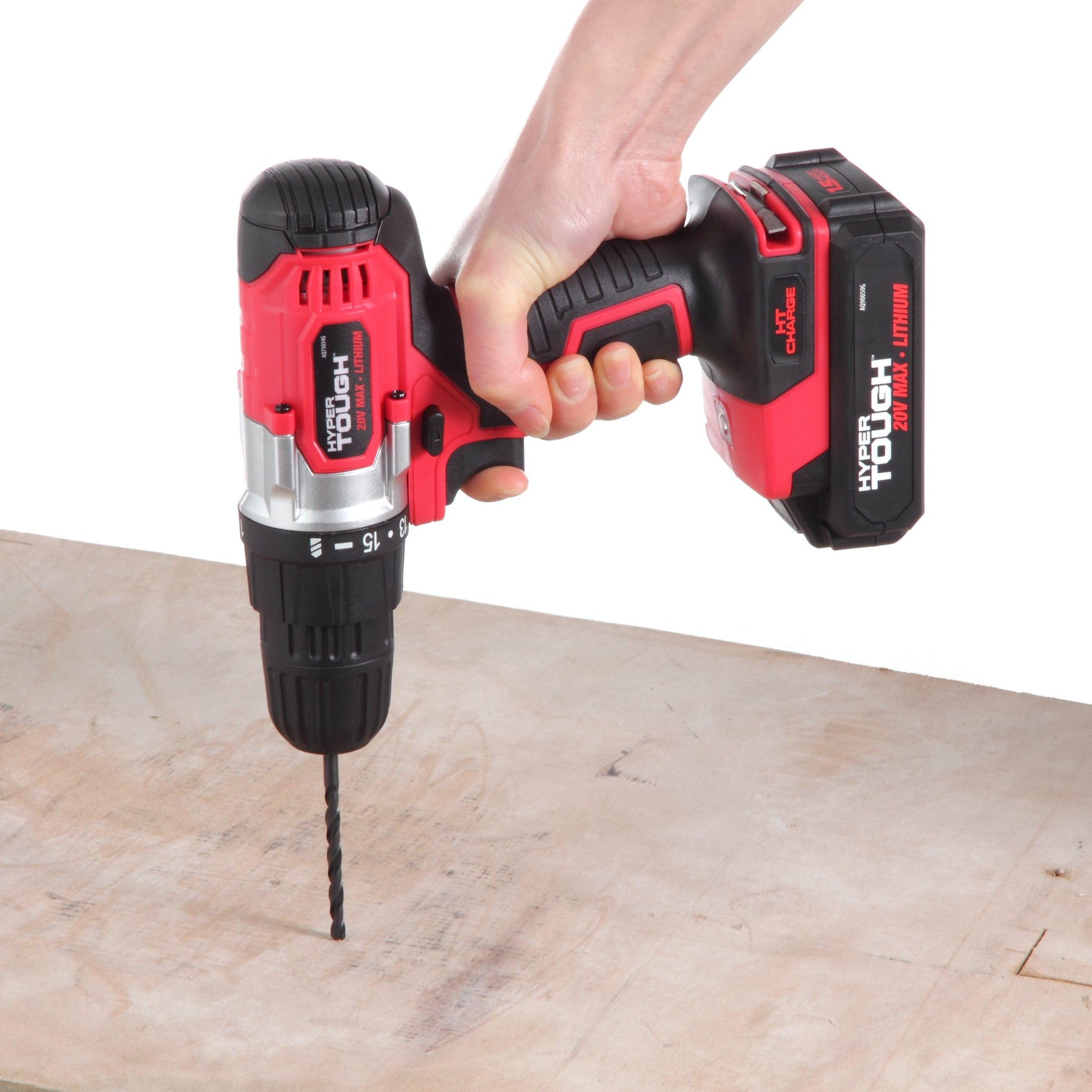 Hyper Tough 20V Max 3/8-in. Cordless Drill & 70-Piece DIY Home Tool Set Project Kit w/1.5Ah Lithium-Ion Battery & Charger, Bit Holder, LED Work Light & Storage Bag