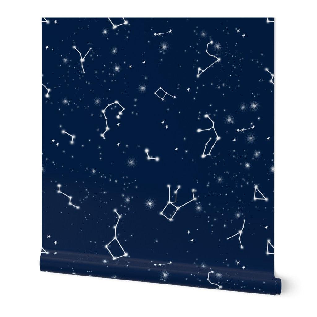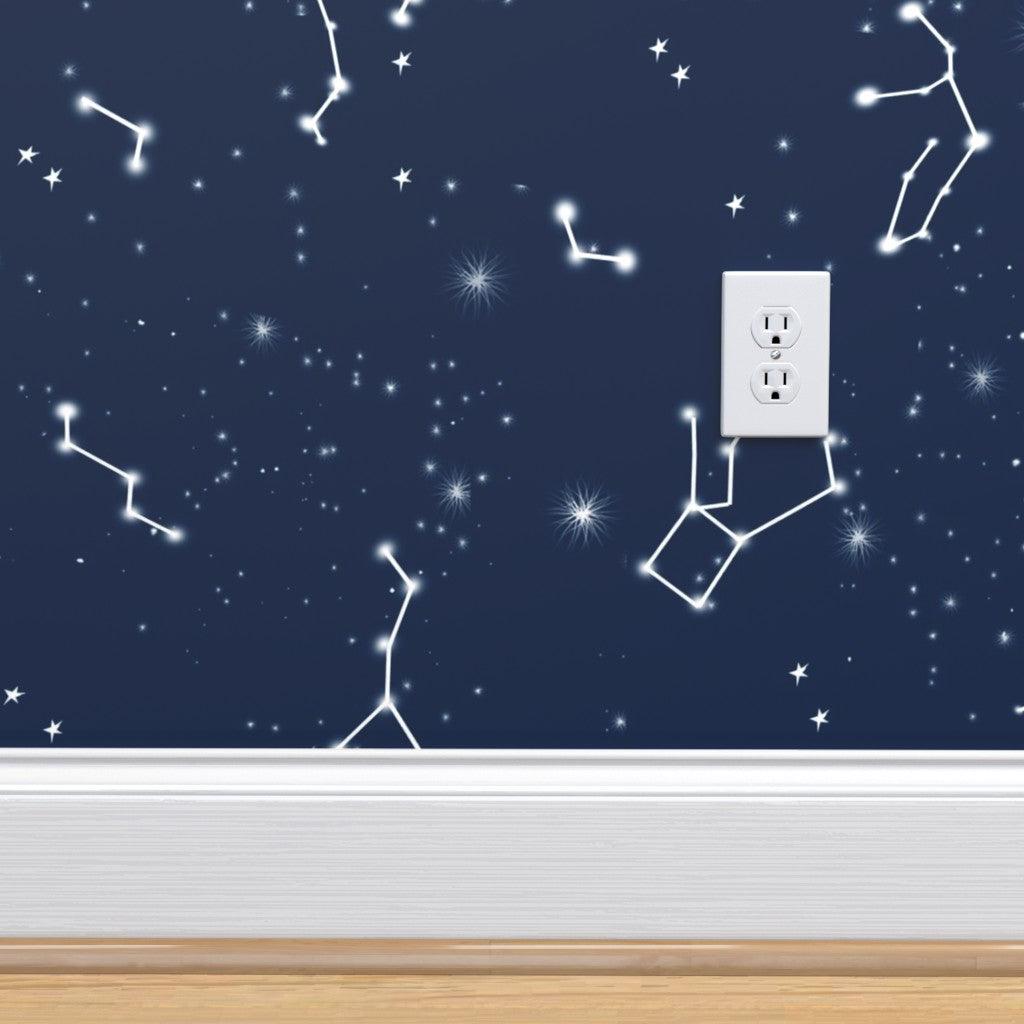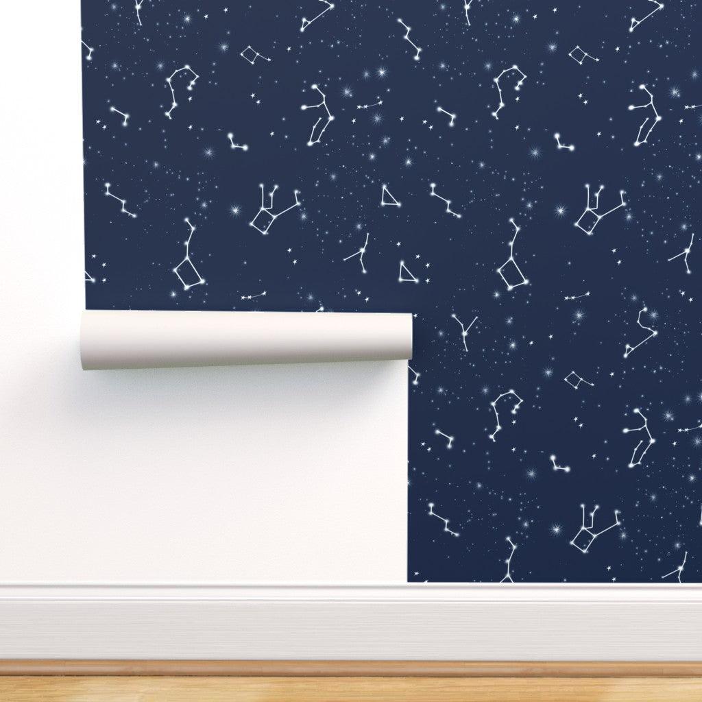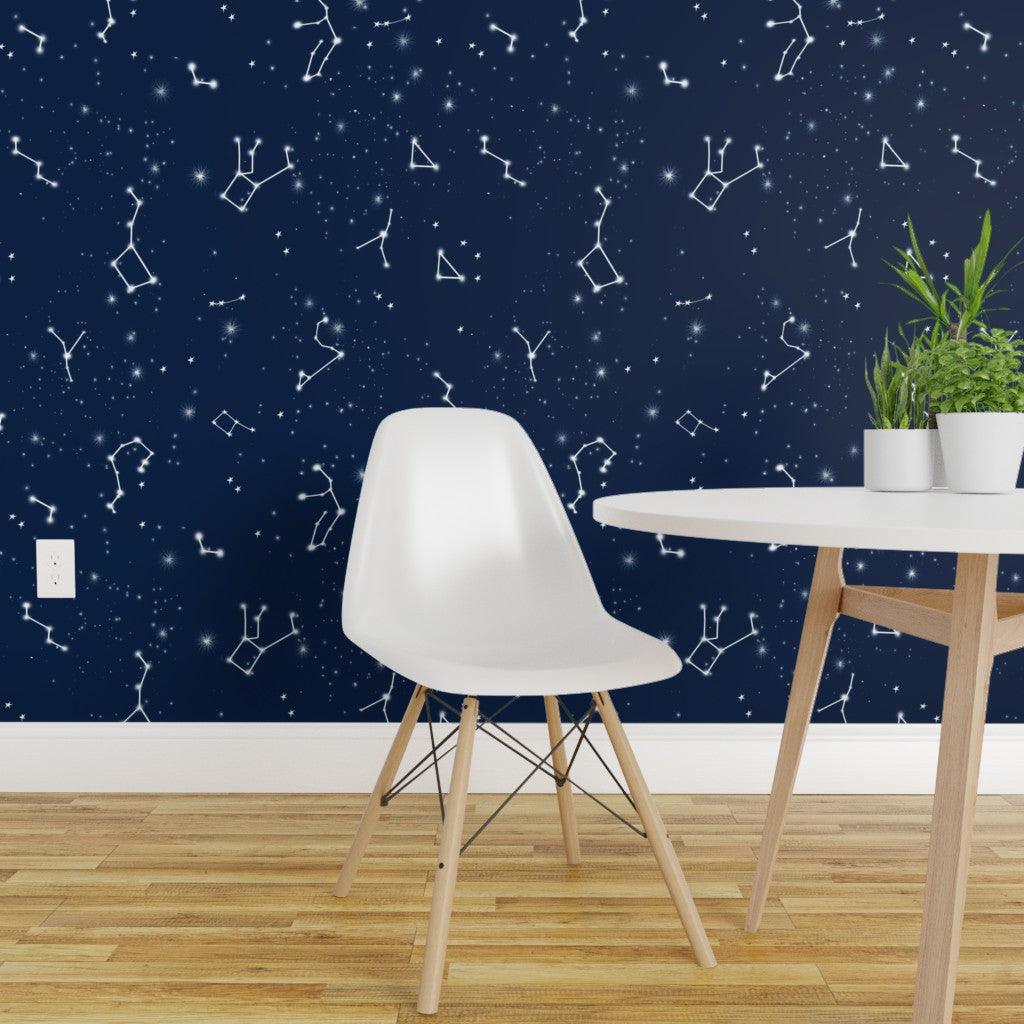 Peel-and-Stick Removable Wallpaper Constellations Kids Stars Navy Blue Baby Boy