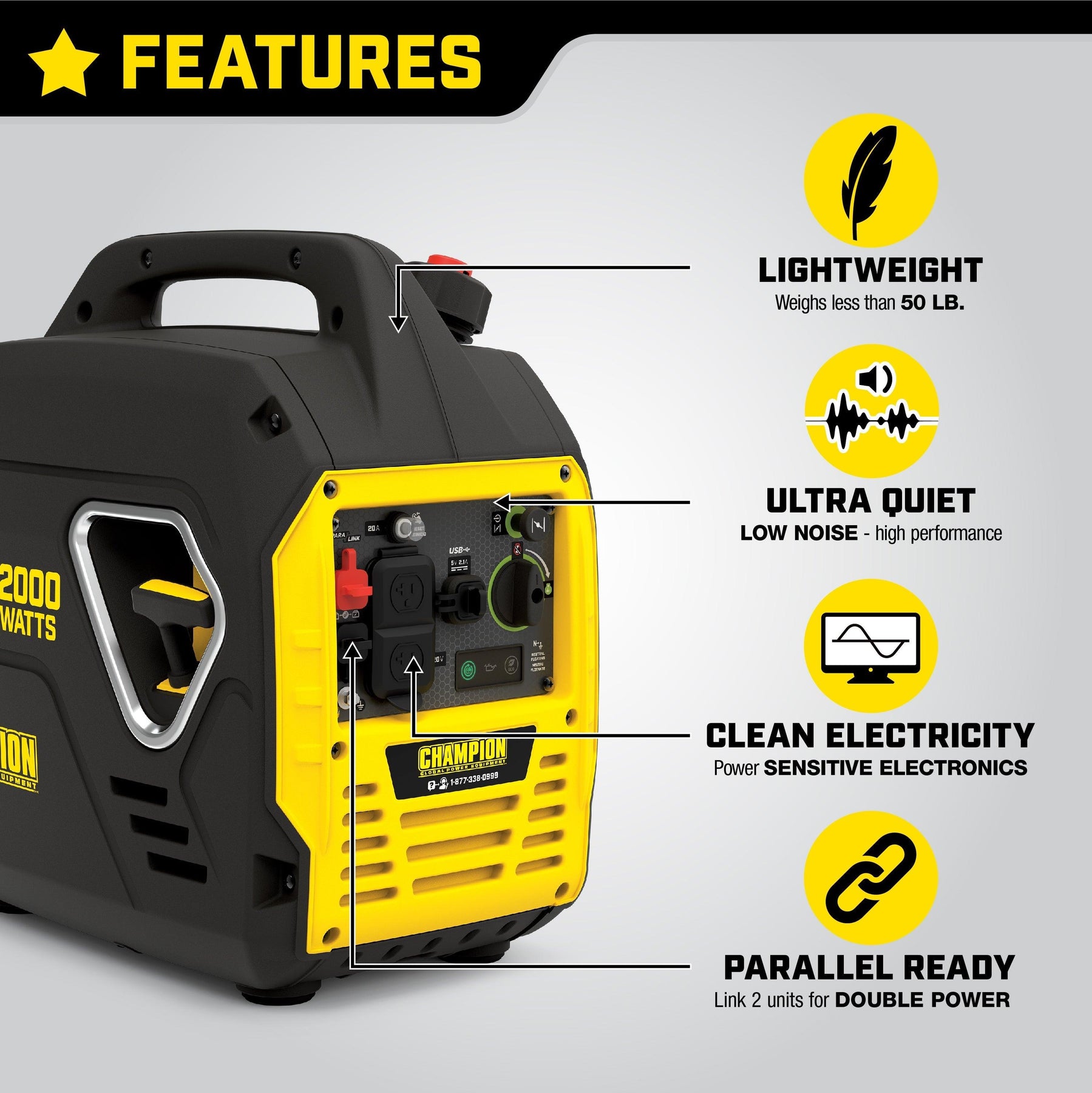 Champion Power Equipment 2000-Watt Ultralight Portable Inverter Generator with USB Ports