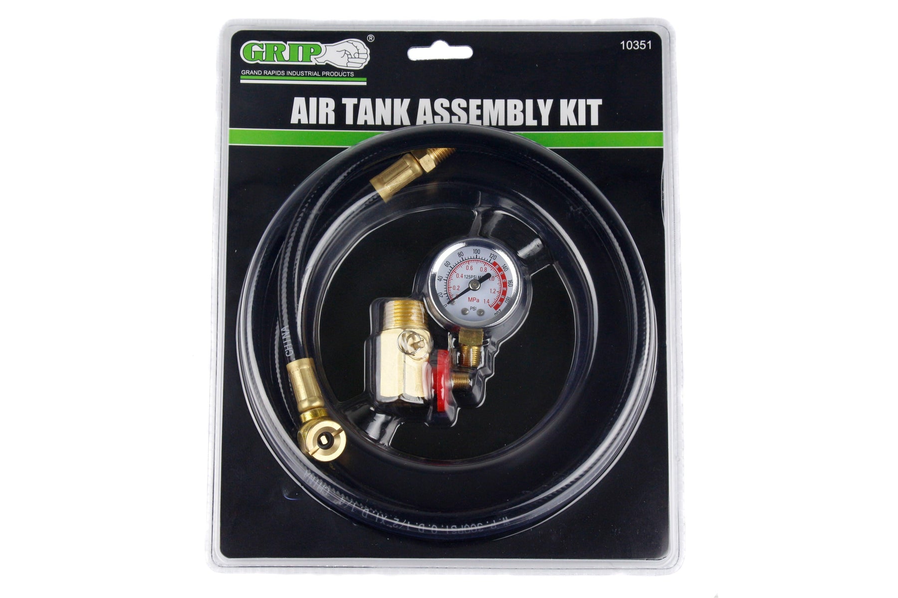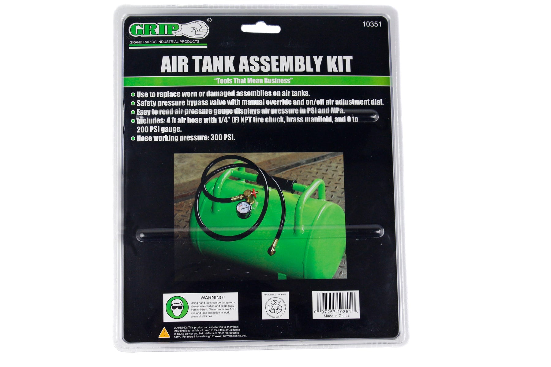 Air Tank Assembly Kit 4 ft Hose 0-200 PSI Gauge 1/4" NPT Tire Chuck GRIP 10351