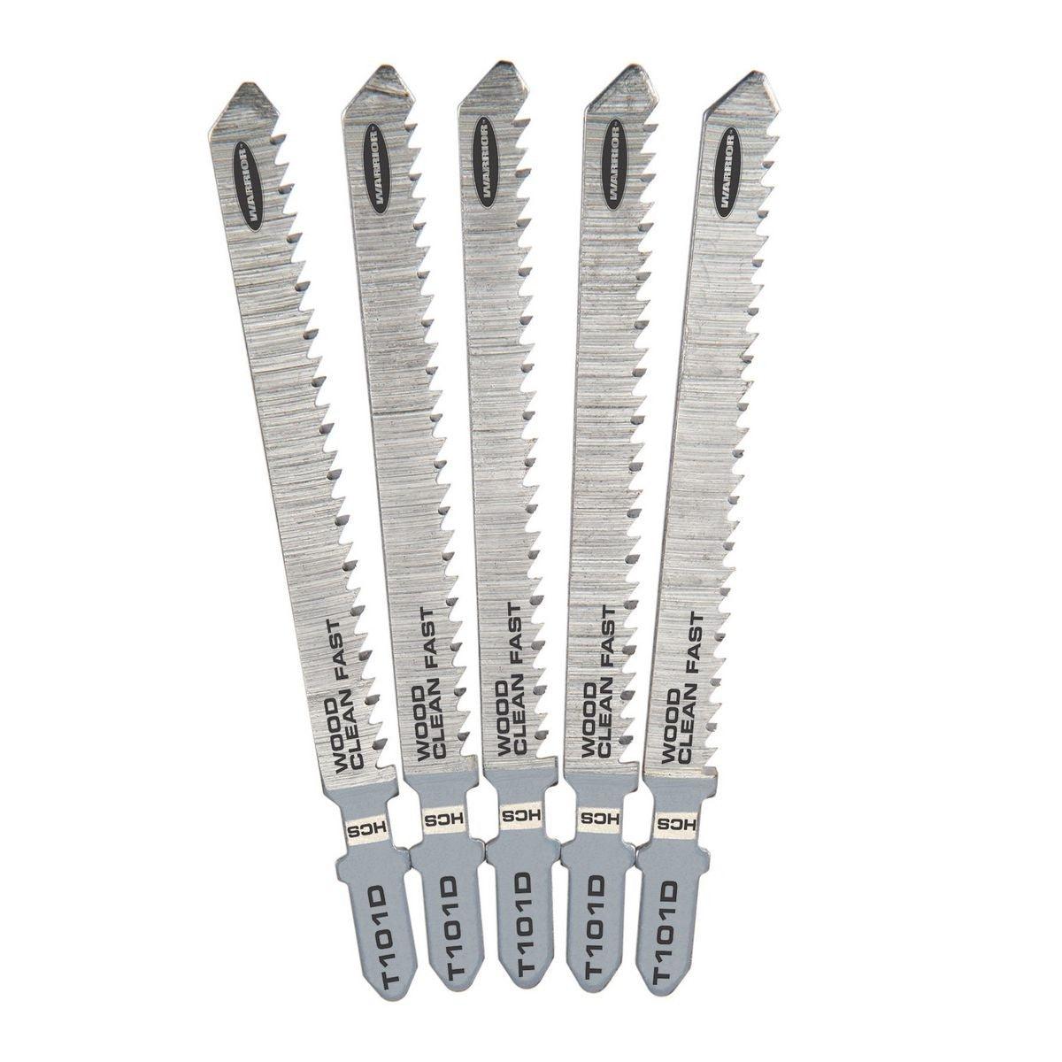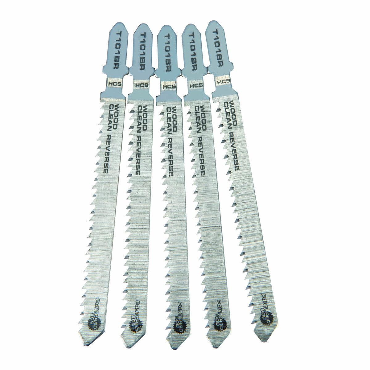 This set of jigsaw blades is designed with reverse teeth for making splinter-free cuts in wood. Designed with 10 teeth per inch, these blades provide clean cuts in hard and soft wood, laminates, melamine, plywood and plastics. The precision-cut teeth on these high carbon steel blades stay strong and sharp longer compared to regular blades.