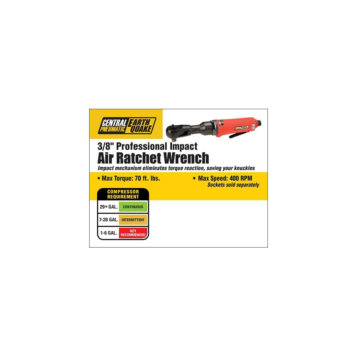 This professional quality air ratchet is three times faster than standard air wrenches. Features include a silencing handle exhaust for a quieter output as you work and a reactionless mechanism that stops wrench motion when max torque is reached to prevent injury. This air wrench is a great tool for mechanics at the auto shop or technicians working with machinery.