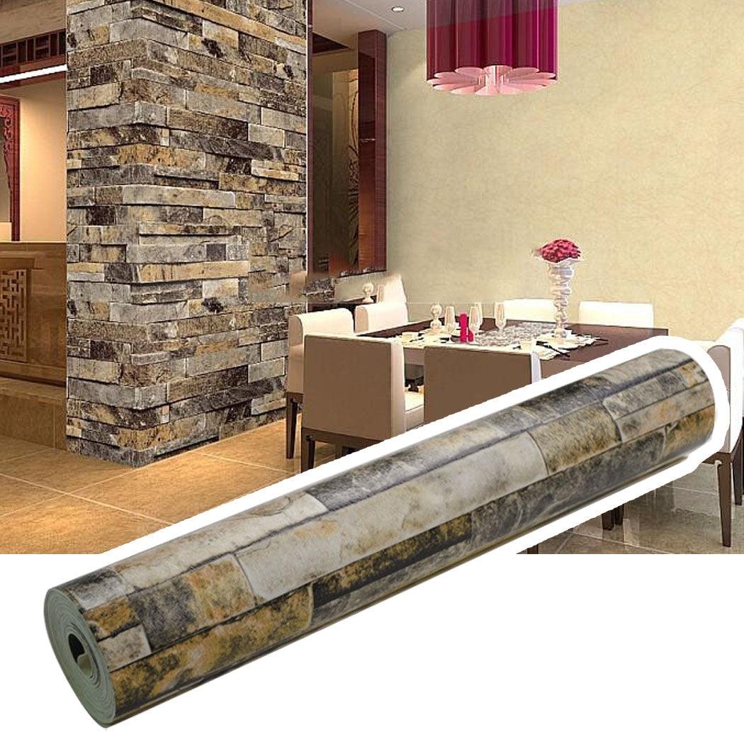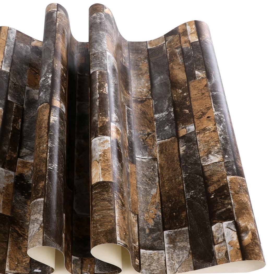 3D Effect Natural Embossed Retro Stack Stone Brick Tile Print Wall Paper Wallpaper HITC