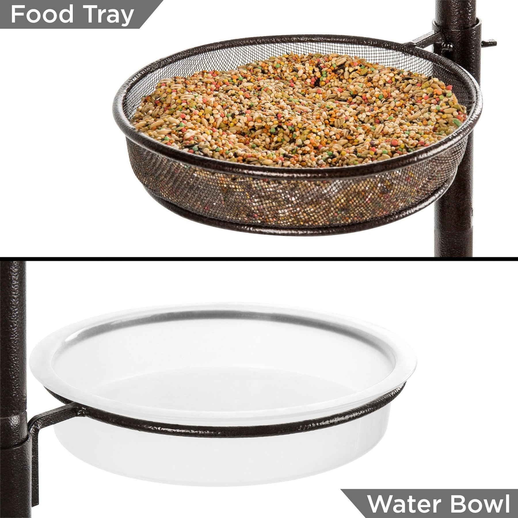 Best Choice Products 89in 6-Hook Bird Feeding Station, Steel Multi-Feeder Stand w/ 4 Feeders, Tray, Bird Bath - Bronze
