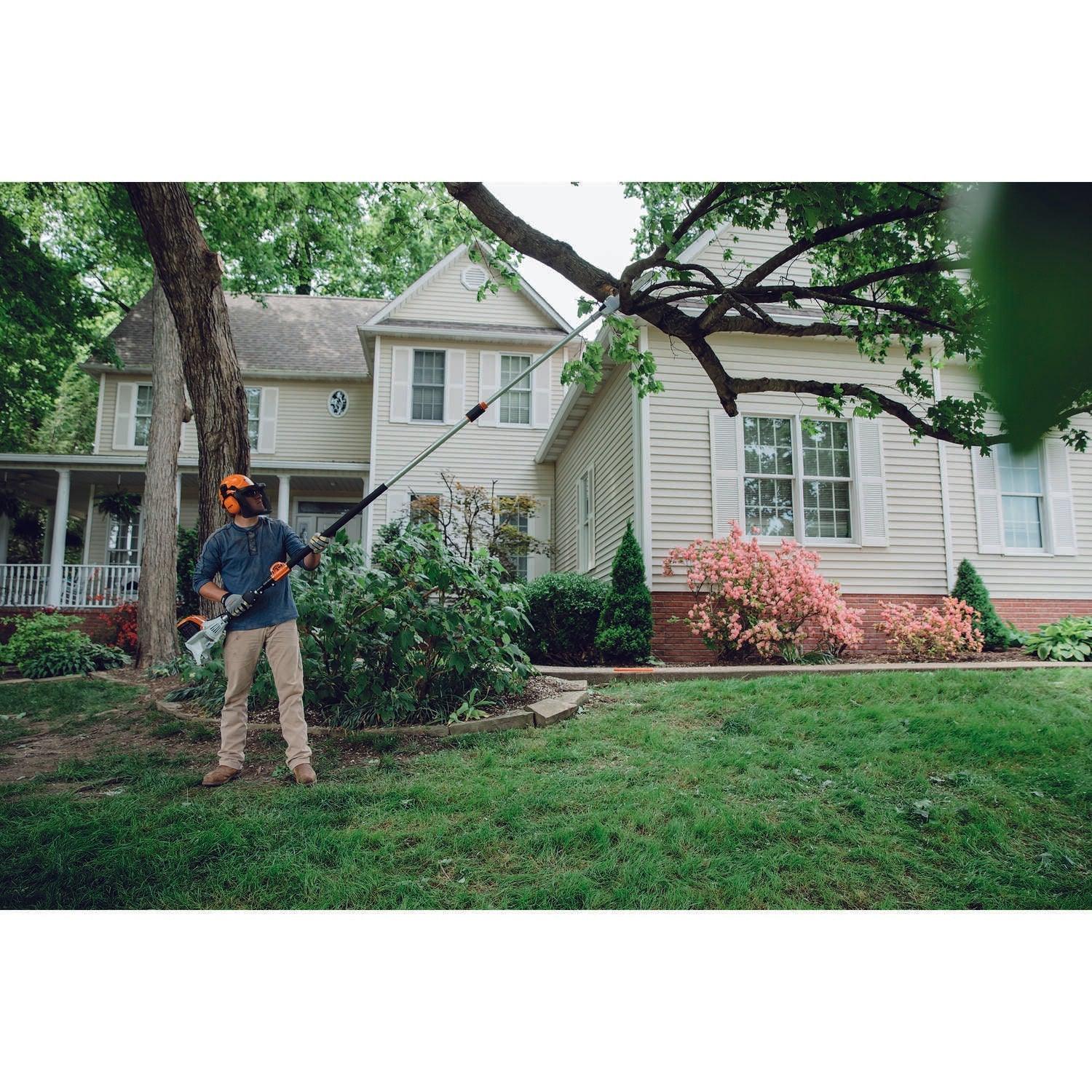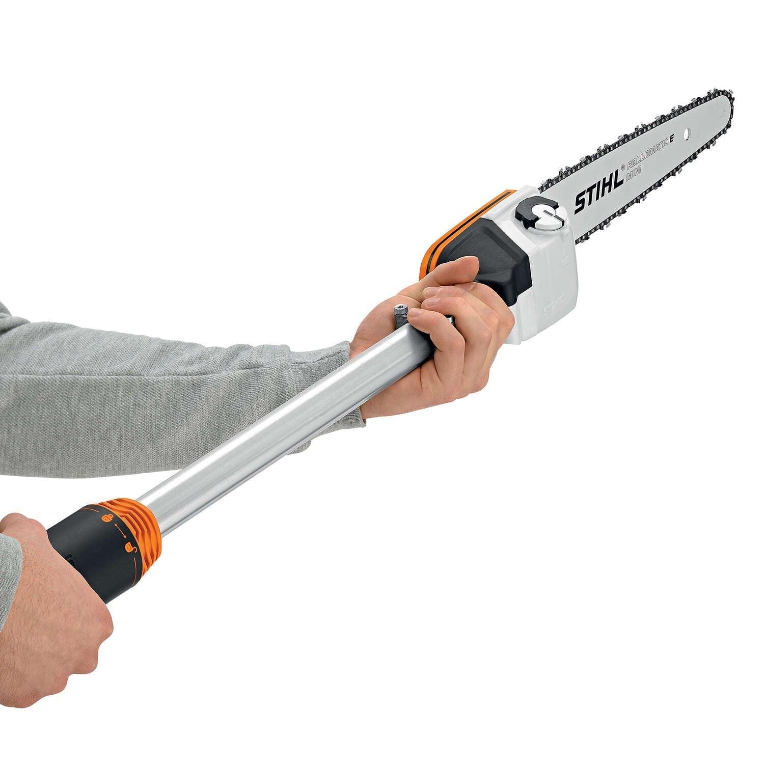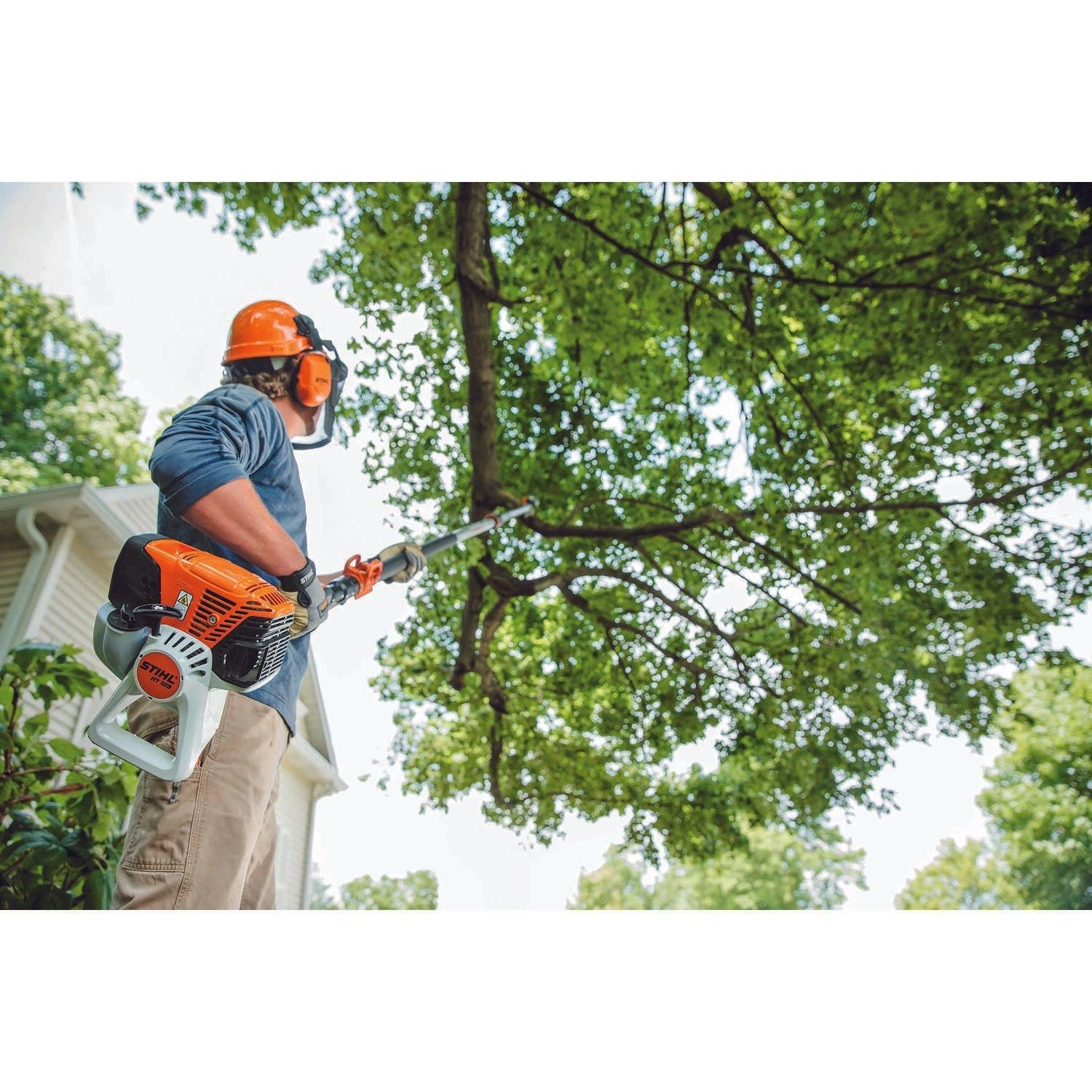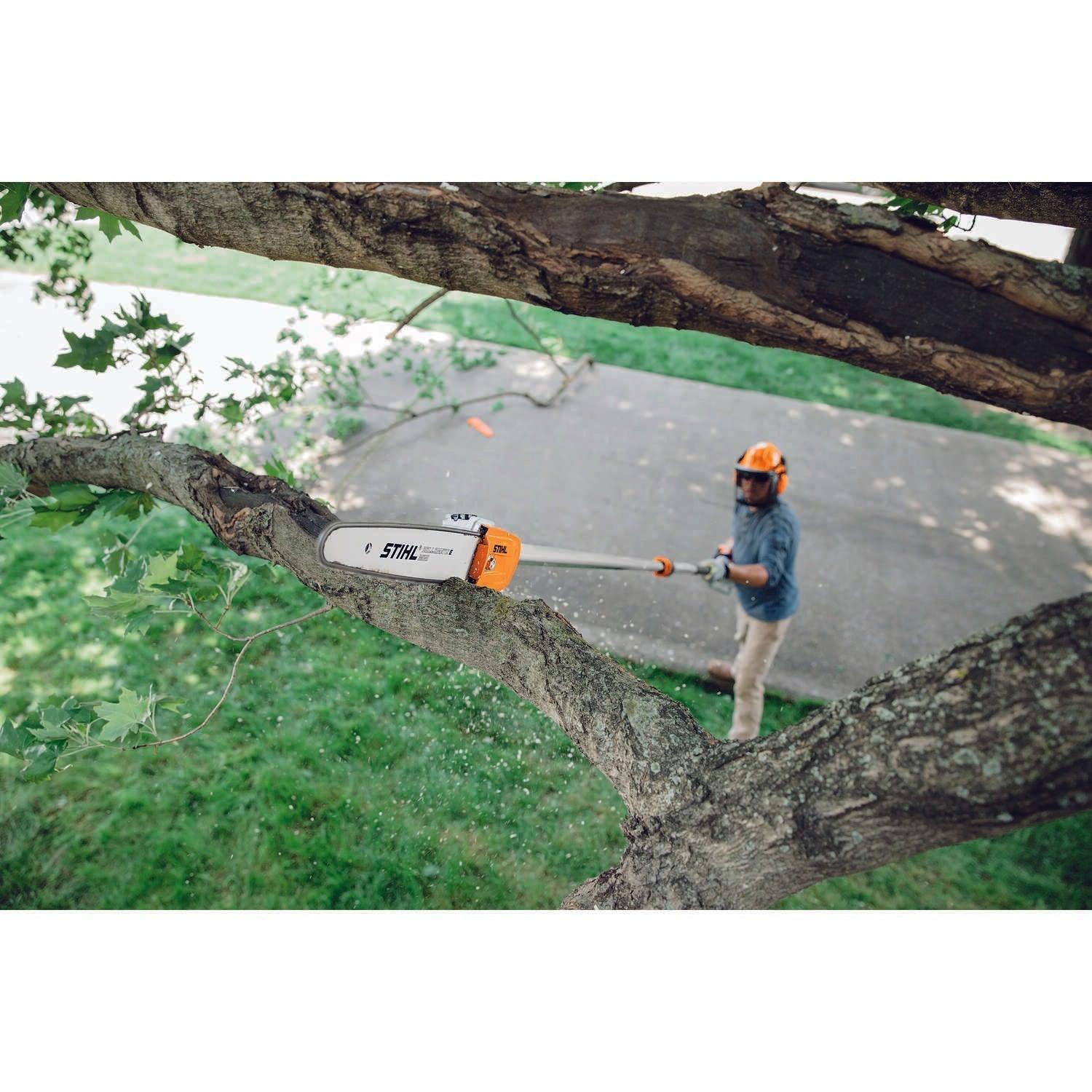 Whether you are tackling low-hanging branches or trimming higher ones, you want to do your pruning jobs with ease and comfort. With the HT 103 Pole Pruner, get ready for a tool designed to reduce fatigue and improve handling. Its telescoping design increases rigidity while extending and easily locks into position, letting you prune high branches with precision. This reduced-weight pole pruner also has a large fuel tank providing 30% longer run times than previous models. Combined with features like the semi-automatic choke lever, one-touch stop, no-slip grip clamp and 1/4" STIHL PICCO™ Micro™ 3 (PM3) saw chain, you get a fast and convenient tool that makes clean cuts.