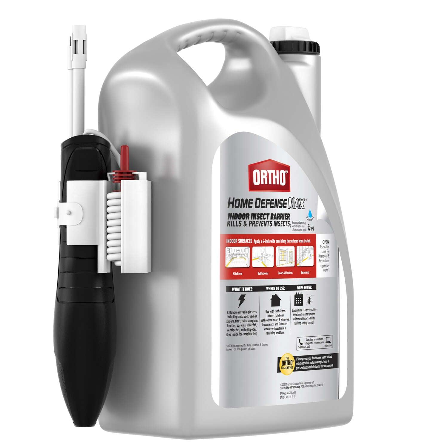 Create an indoor bug barrier against all common household insects with Ortho Home Defense Max Indoor Insect Barrier. Kills ants, cockroaches, spiders, fleas, ticks, scorpions, beetles, earwigs, silverfish, centipedes, millipedes, and other insects as listed. This fast-drying formula has no fumes and leaves no stains so you can use with confidence indoors. It spreads easily into cracks, crevices, under appliances, and into hard to reach places where insects hide--in kitchens, bathrooms, and basements, and around doors and windows. The extended reach Comfort Wand reduces back bending and helps reduce hand fatigue when applying. Use Ortho Home Defense Max Indoor Insect Barrier anytime you see evidence of insect activity or need to put down a preventative barrier to keep bugs out.