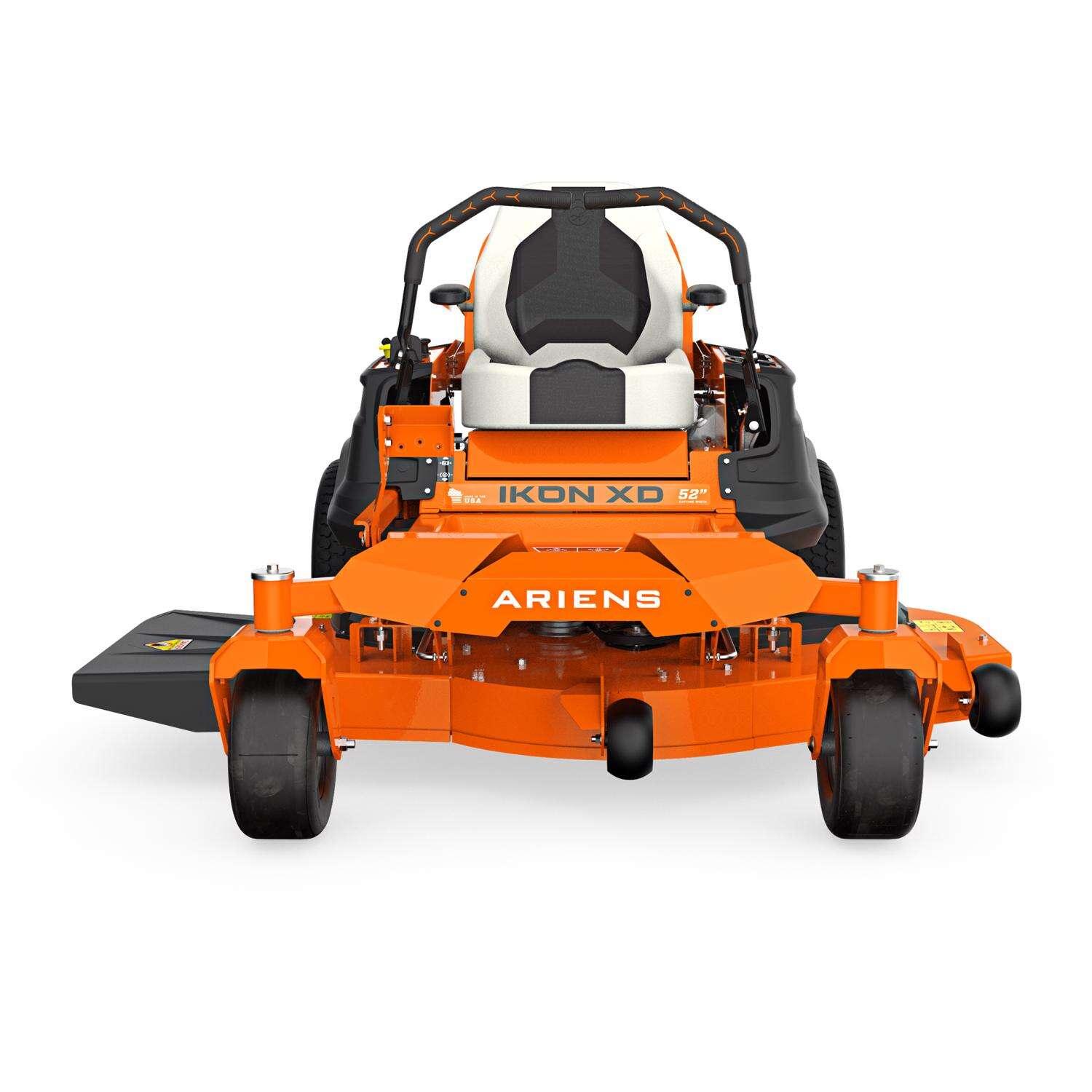 The Ariens IKON XD 52-in is packed with high end residential quality and offers superior power and performance. From a 23 HP Kawasaki FR V-Twin engine to a 11-gauge steel fabricated deck, this is a tougher, longer-lasting zero-turn mower built to perform. It's constructed with a heavy-duty fully welded steel tubular frame for years of durability and performance and is equipped with three blades covering a 52-in cutting width. Greater comfort is achieved with the high back plush seat, including standard armrests and ergonomic intuitive controls. Ariens puts a high priority on building low-maintenance machines incorporating our self-adjusting deck drive belt technology. We assess, scrutinize, improve, and test every last pin, bolt, and belt. From smarter, sustainable components, to durable, virtually indestructible designs, we’re known for consistently delivering an effortless ownership experience and standing the test of time.