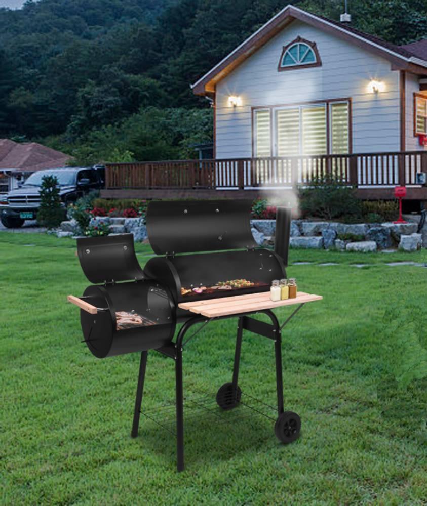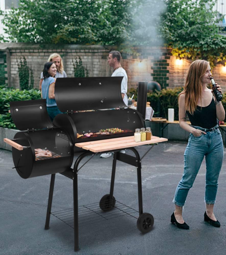 Portable BBQ Grill, SEGMART Charcoal BBQ Grill Outdoor Charcoal Grill with Smoker, Heavy Duty 24.4" BBQ Grill with Side Burner & Thermometer, Grills Outdoor Cooking for Camping Backyard, Black, H1204