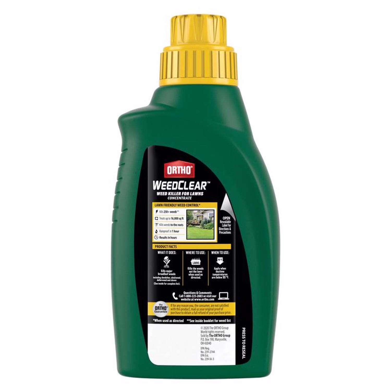 - Use Ortho® WeedClear™ Weed Killer for Lawns Concentrate to kill weeds down to the root, without harming your lawn (when used as directed); you'll see visible results in hours