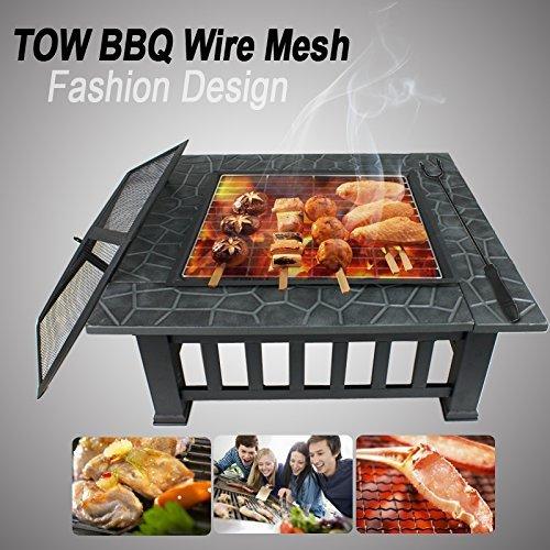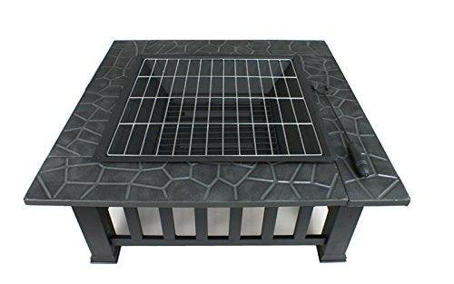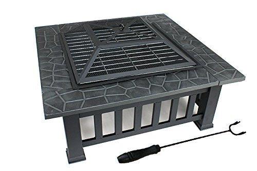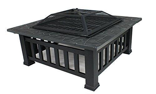 32" Zeny Outdoor Fire Pit Square Metal Firepit Backyard Patio Garden Stove Wood Burning Fire Pit W/Rain Cover, Black