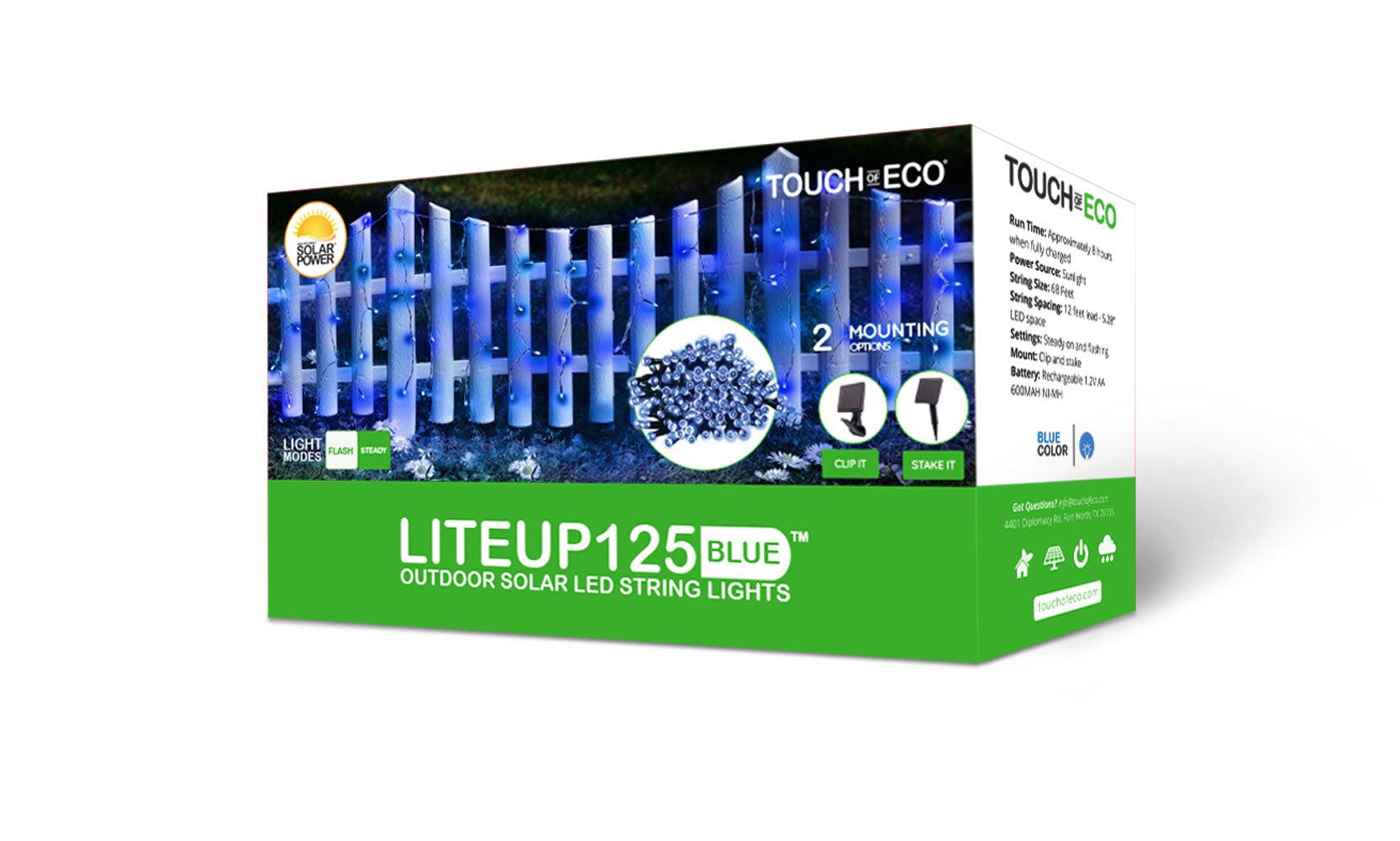 125 Solar Powered LED String Lights, 68 Feet - Blue