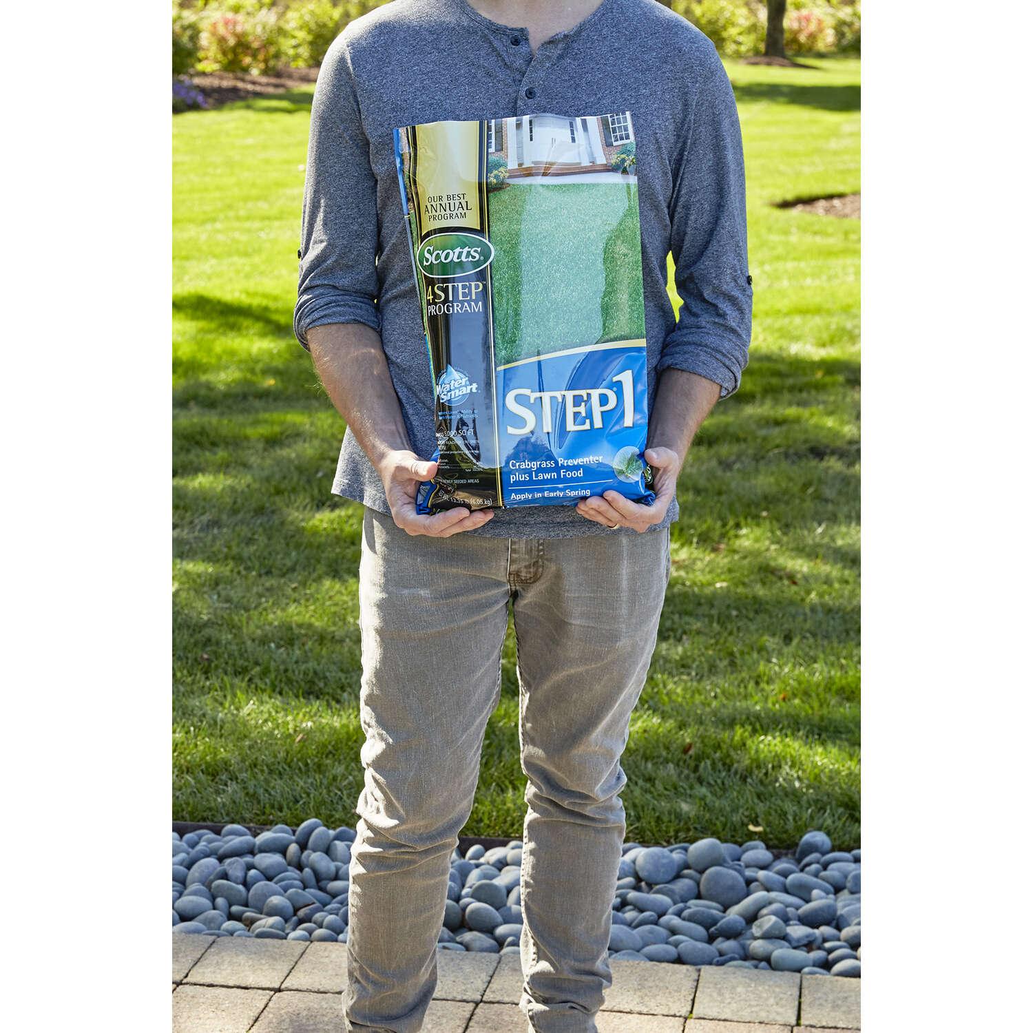 Early Spring: Use Scotts® Step® 1 Crabgrass Preventer Plus Lawn Food for a fast green-up after winter; it also controls crabgrass for up to 4 months