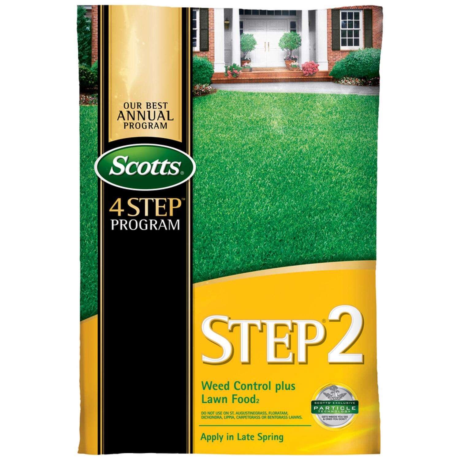 It's easy for you to have a better lawn with the Scotts 4 Step Program! Begin the Annual Program anytime of the year: just check the month and select the appropriate step listed. Then apply the remaining steps in two-month intervals. Apply Scotts Step 1 for seeding starter lawn food with weed preventer in early spring. It not only has the strength to prevent pesky weeds, but it also helps grow a newly seeded/over seeded lawn. Scotts Step 2 weed control plus lawn food builds thick, green turf from the roots up. It uses Scotts exclusive particle technology to get the weeds you see and the ones you don't. Apply Scotts Step 2 weed control plus lawn food in late spring for best results. Scotts Step 3 lawn food with 2% Iron can be applied any season for a great green-up. It also strengthens the lawn against heat and drought. Using Scotts Step 4 fall lawn food is a great way to strengthen your lawn before the winds of winter cut across it. It helps your lawn build stronger roots for the winter.