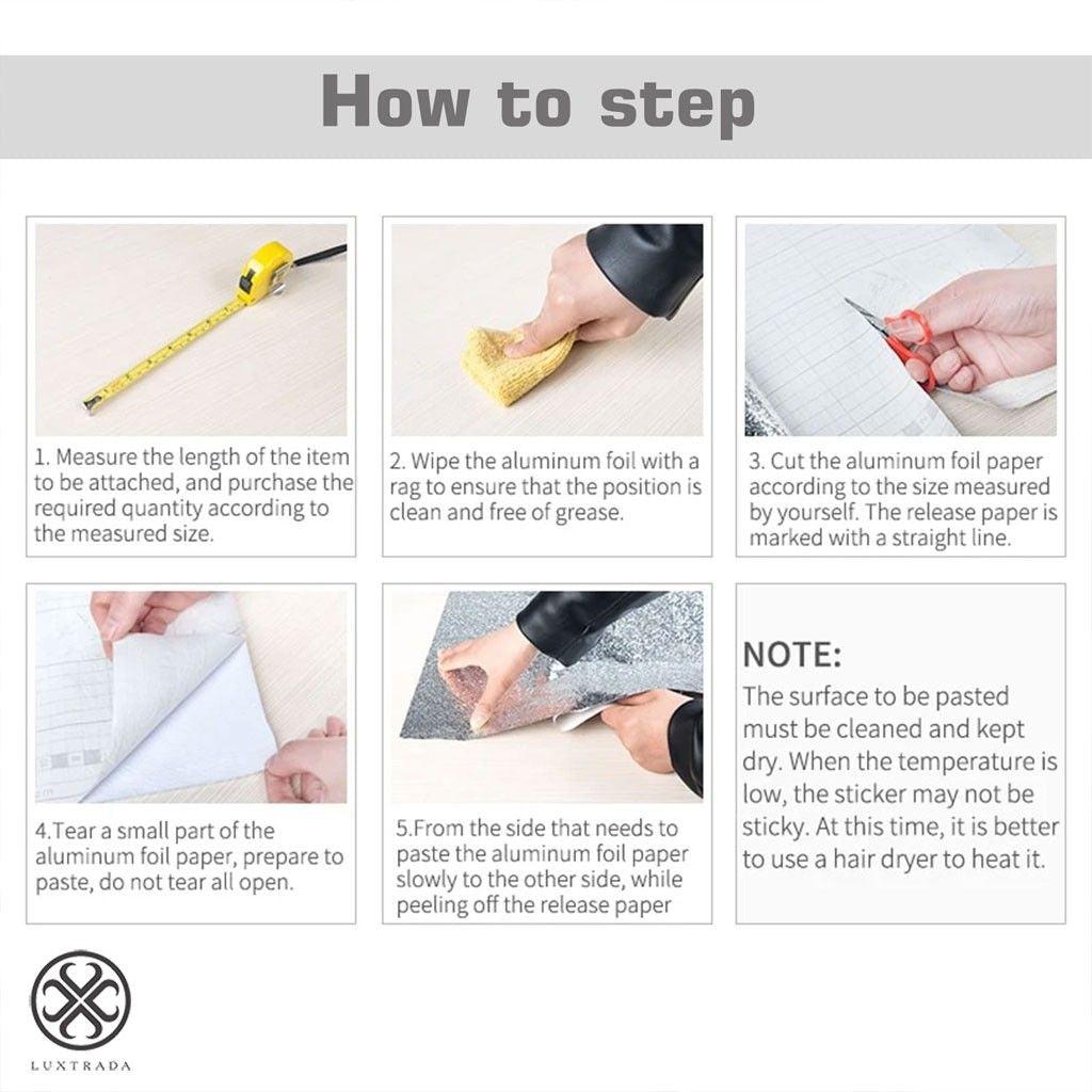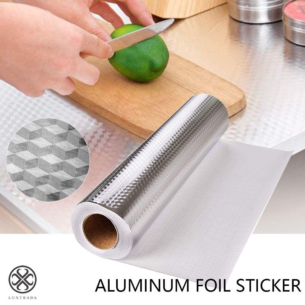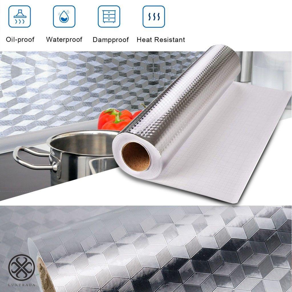 Luxtrada Kitchen Waterproof Oil Proof Aluminum Foil Stickers Anti Greasy Counter Top Peel Stick Wall Decor Paper Self Adhesive Kitchen Backsplash Stickers Wallpaper Stove Sticker