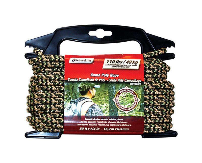 SecureLine 1/4 in. D X 50 ft. L Camouflage Diamond Braided Polypropylene Rope