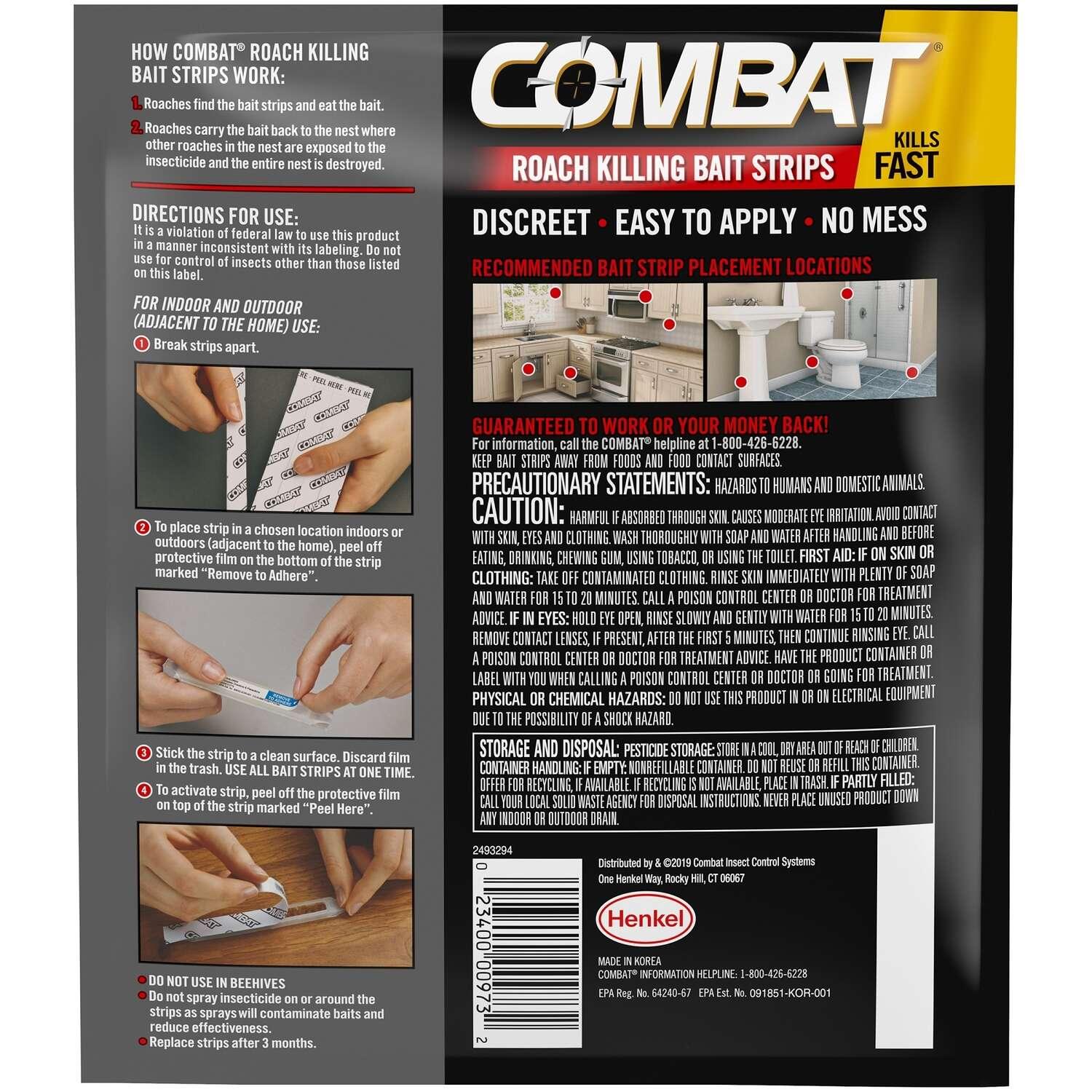 Combat Roach Killing Bait Strips formula attracts roaches with the food and water they need, making it a highly effective tool in the fight to kill roaches. Roach killing bait strips kills both large and small roaches in their nest. With an unobtrusive discreet design, they are easy to apply with no mess. Combat Roach Killing Bait Strips can be placed throughout your home so more roaches can find and eat the bait.